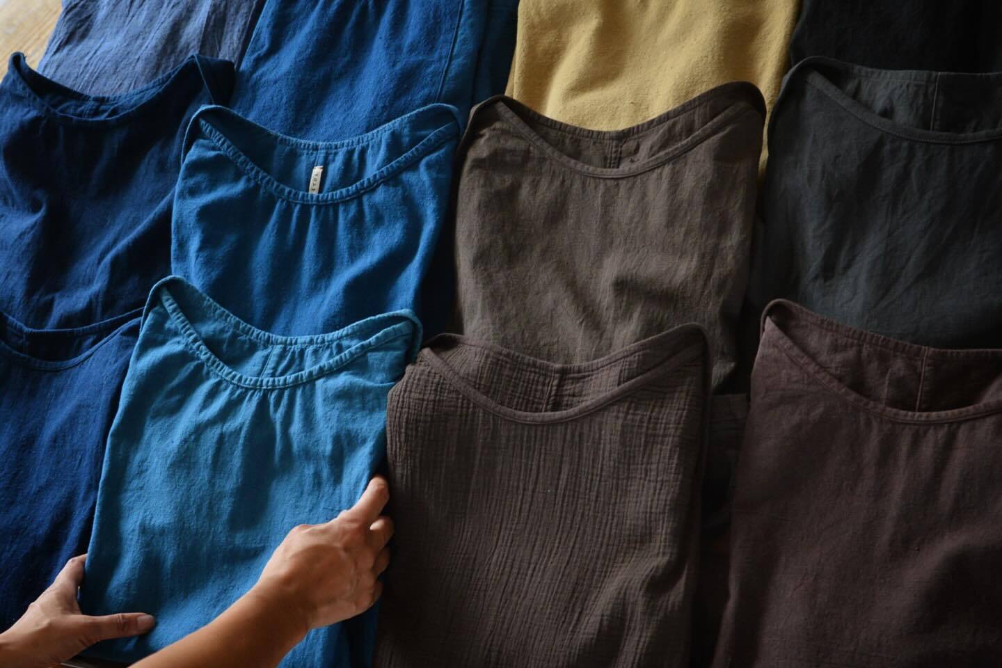伝統服や民族衣装から発想した、働き育つ日々の服をイメージし、デザイン、パターン、製作、染色、販売まで小さな循環の中で営んでいます。