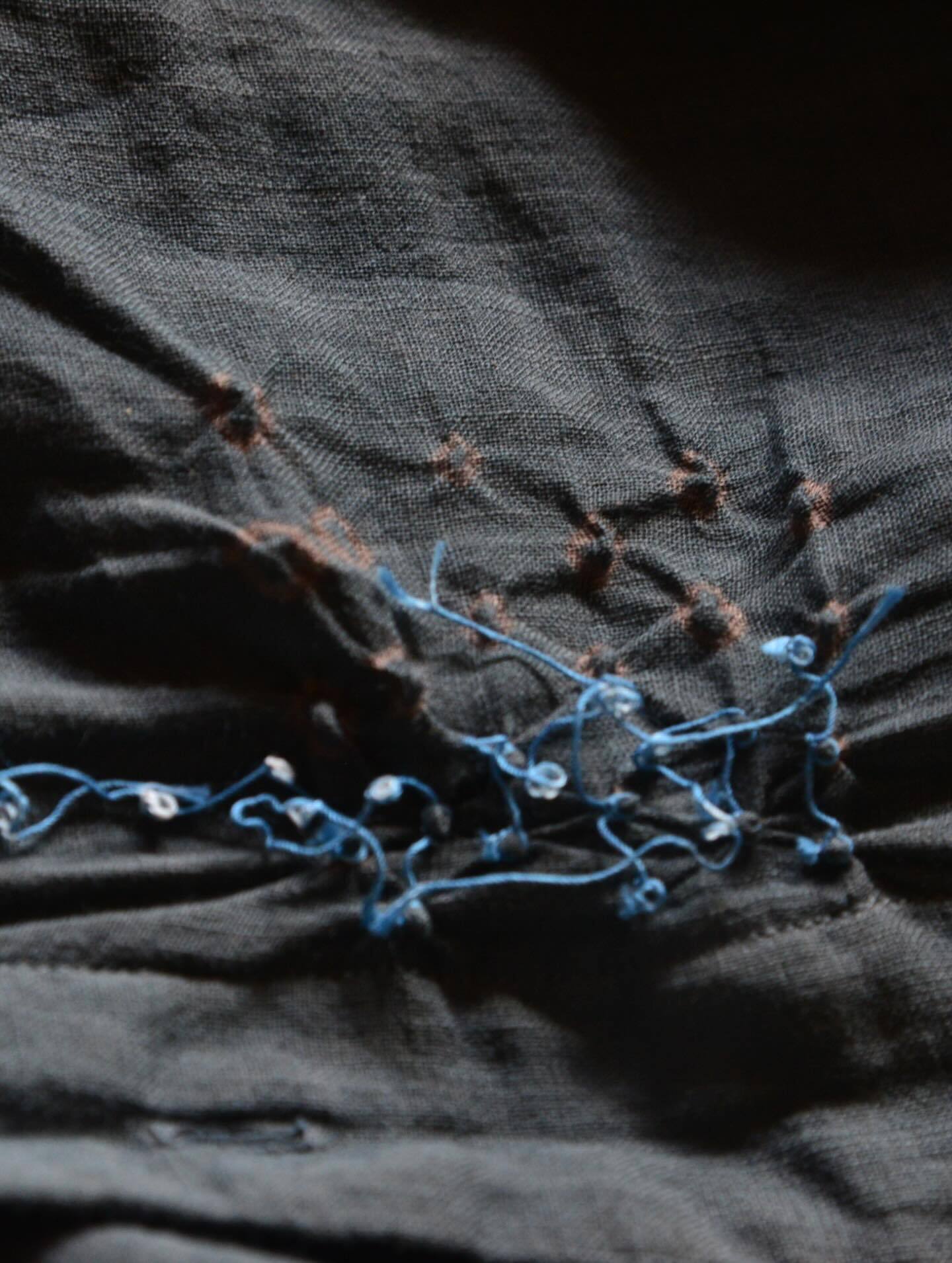 ハッピーミステイク(happy mistake) 人間相手、自然相手に仕事をしているとどうしても間違いや失敗が起こる事もあります。 自分が責任者の小さな循環の中で服を作っています。 地域の高齢になる縫子さんもいたり、小規模に工業的な生産方法とも違う方法で服を作っています。 製作の過程で傷や不良が起こったり、染色の過程では染めムラが出来る事も多くあります。 長く丁寧に生産過程を踏んだ後に分かると落胆したり苛立つこともありました。 その度にがっかりに見舞われるのは嫌だなと思いました。 なるべくいいエネルギーの中で服を作りたいです。 それで『ハッピーミステイク』と言う言葉を思い出しました。専門学生の頃、講義にきた方が、間違いから生まれたデザインもあり、それをそう呼んでいました。 不具合が出たらB品や製品に出来ないものとし安易に処理せず、何かチャームポイントとなる製品に変える事はできないか手を入れてみる事にしました。 何らかの不具合を、一つの魅力となる様に工夫しながらいいものができたら、それは一つの不揃いの個性を持つhappy mistake品として世に出していけたらと思います。 当て布や刺繍を施したらポイントになり、それが可愛いと言ってくれる方もいらっしゃり、 ネガティブな気持ちの作業が一つ減りました。 それを気に入ってくださる方の元へ届けられたらポジティブな循環になると思い始めた取組みです。