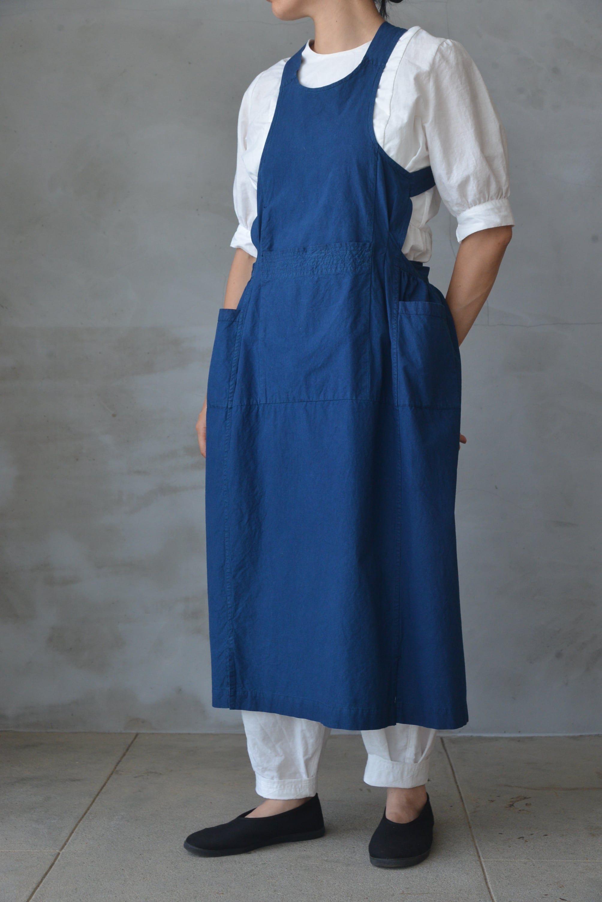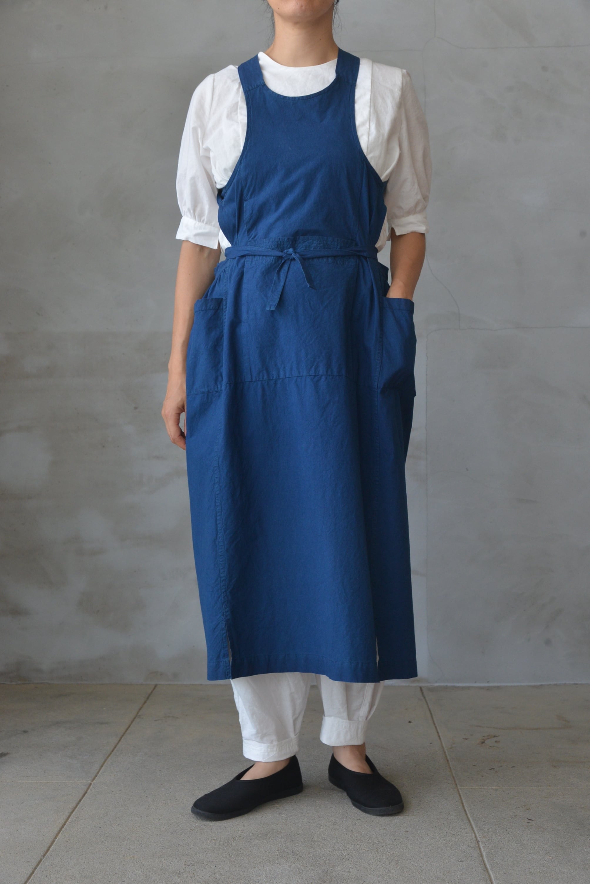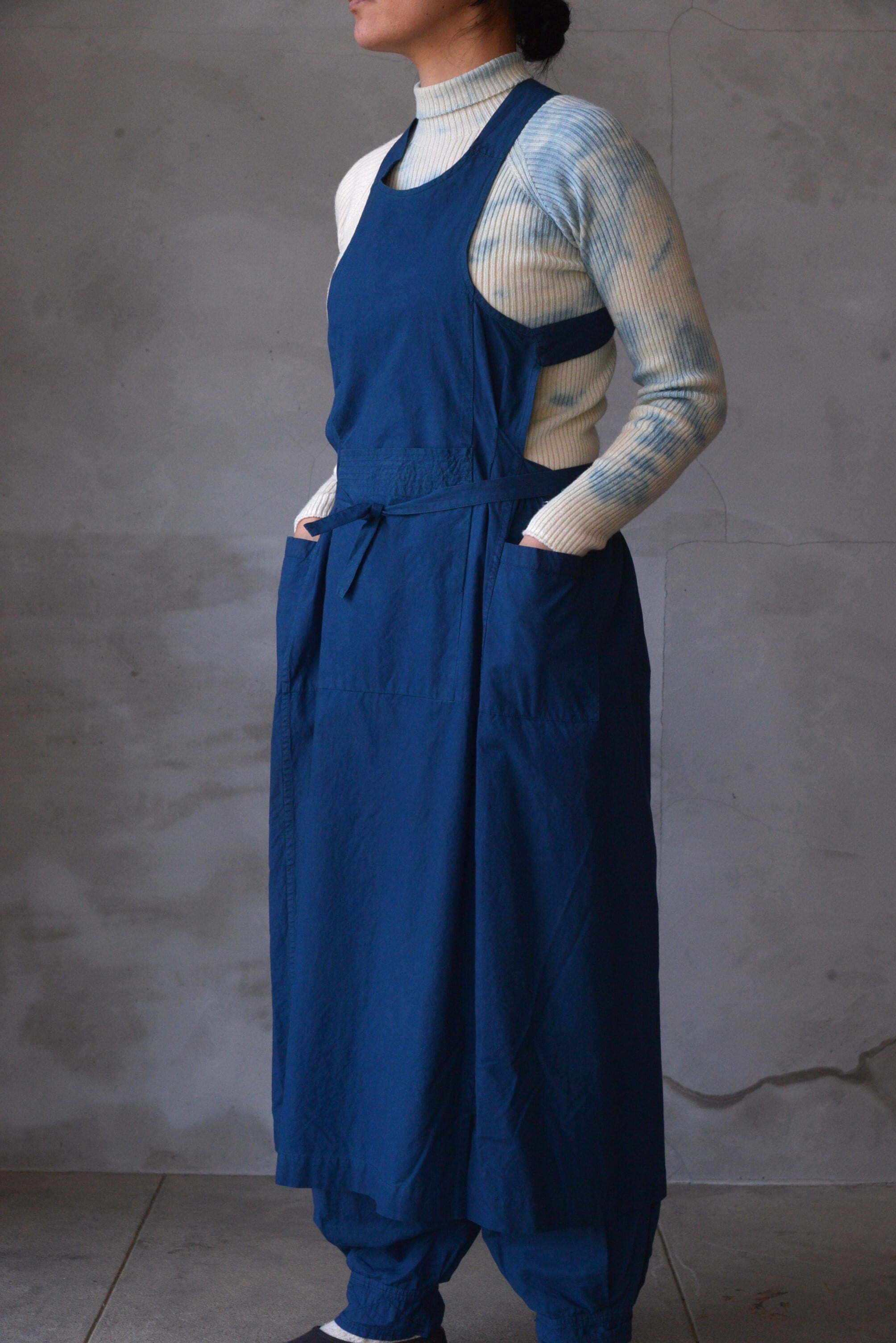 腹掛けエプロンドレス 薄手藍染【小さめミドル】