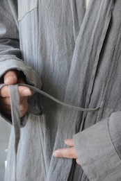 凹凸のあるしぼ感の風合いがよく、昔ながらの織り機で糸に負荷をかけずとても低速で織り空気を含むことにより独特の温かみのある生地です。
