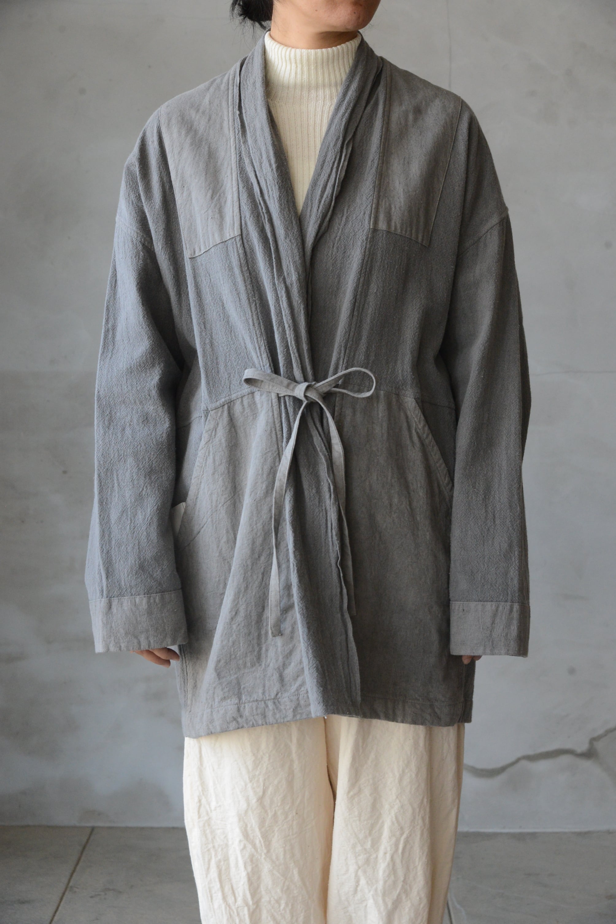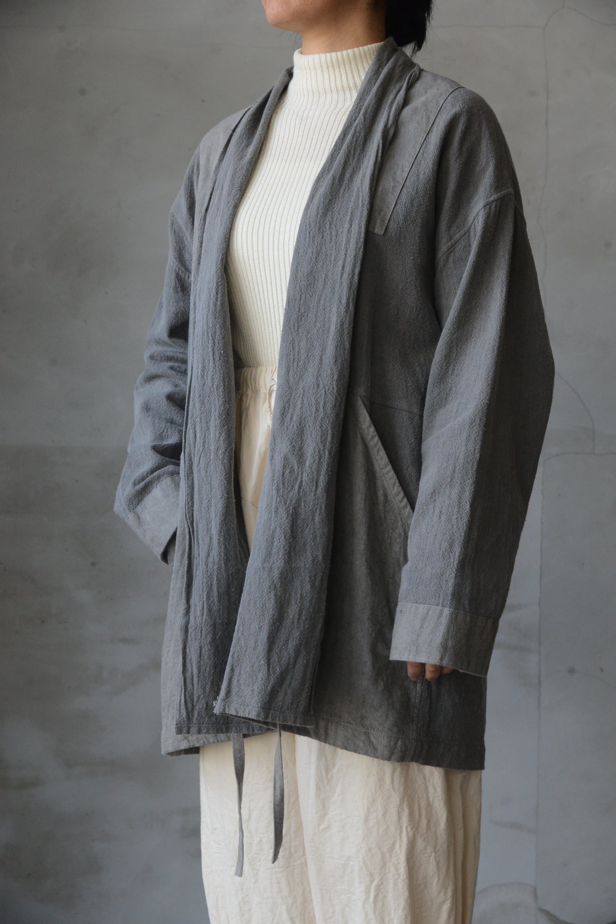 裏無しの一重の仕様、平面的なゆとりのある作りで、下に着こんだりさらっと一枚でも着やすく長いシーズン活躍する一枚です。