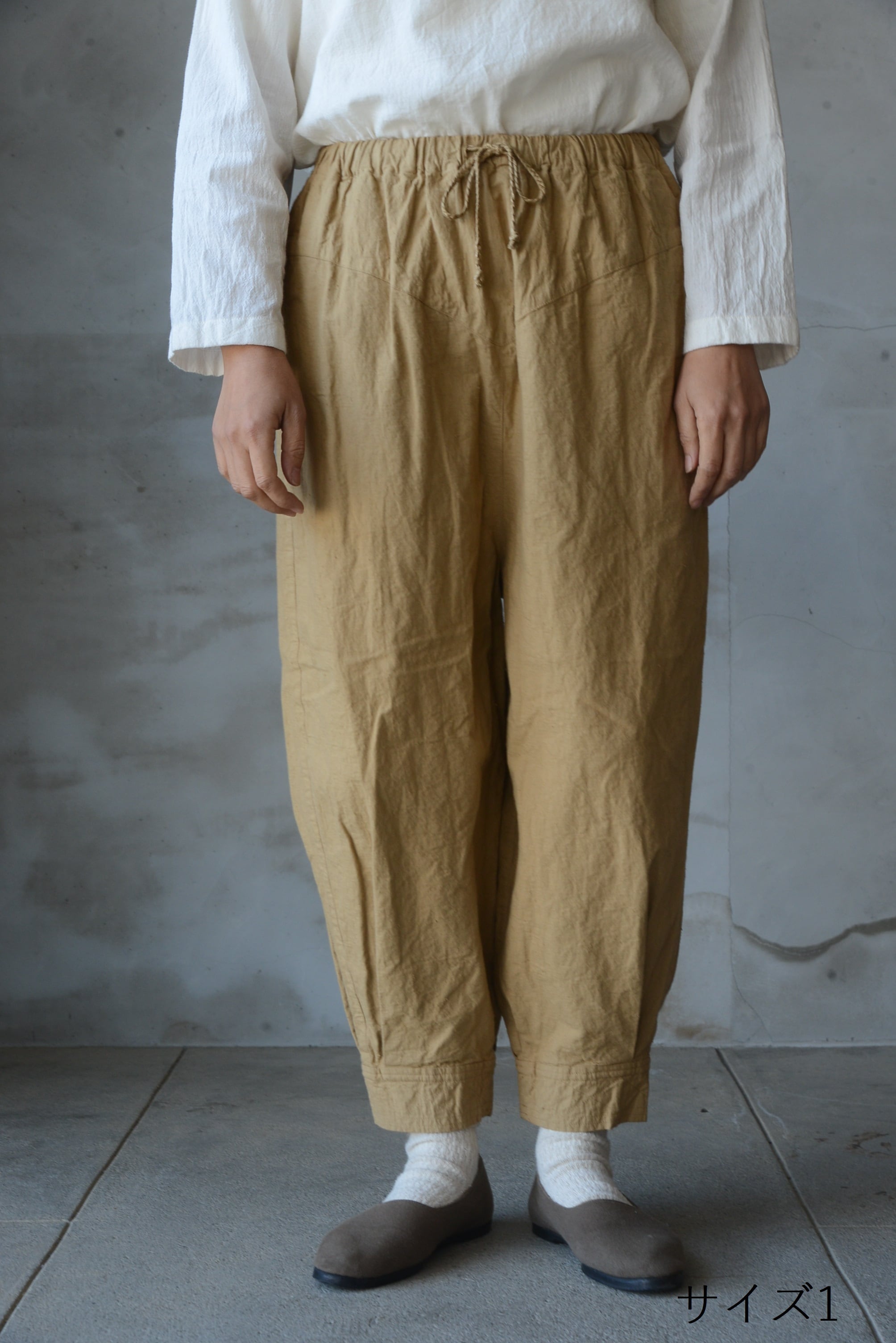 シルエットは中国やアジアのパンツにも似ており、多国籍なデザインのパンツ。