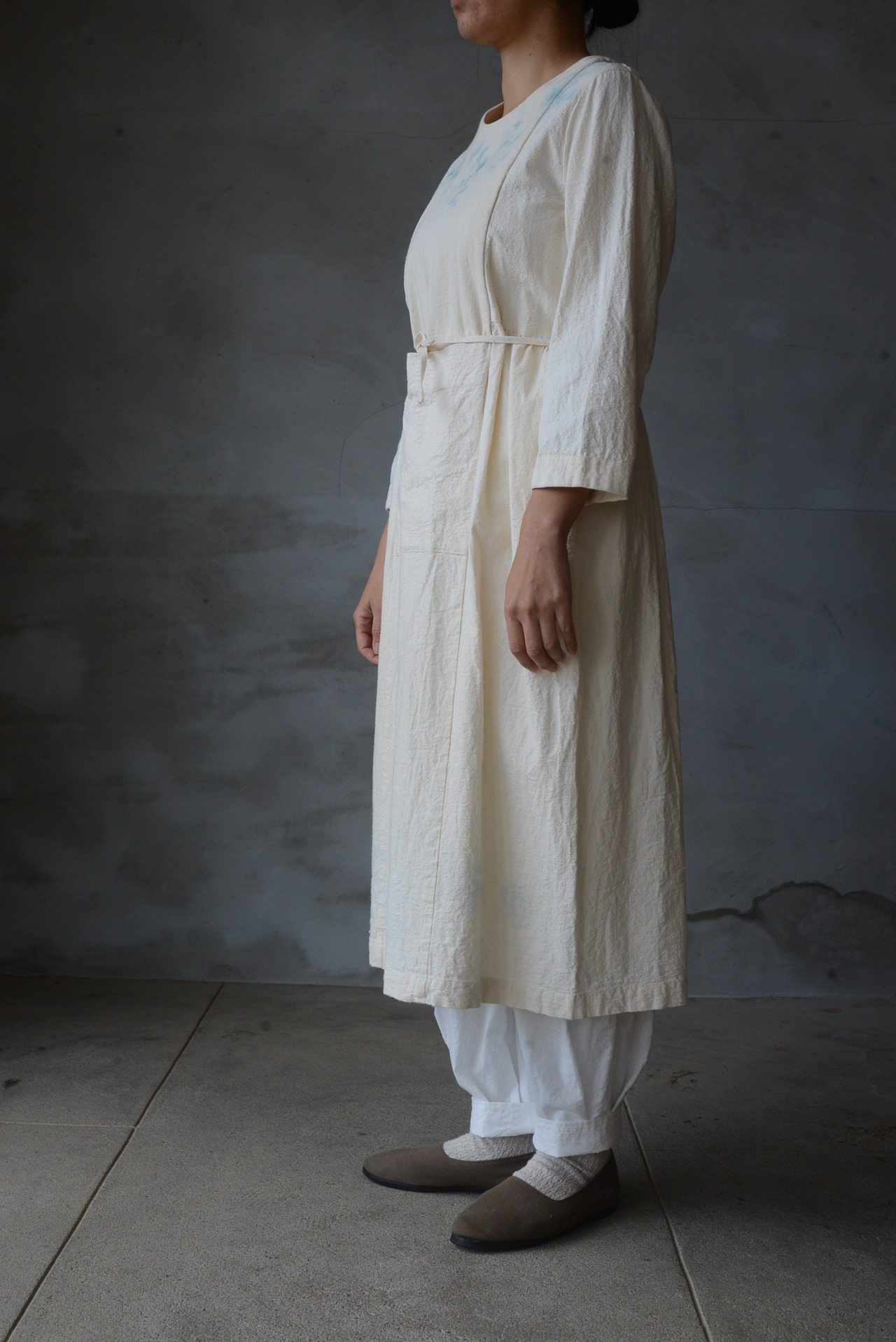 長い腰ひもがついており、垂らしたり結んだりしてシルエットや雰囲気を変えられるます。