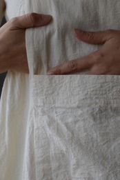 エプロンドレスにある腰のポケットは省き、こちらのワンピースにもポケットはお腹内側と外側に一つずつ付いています。