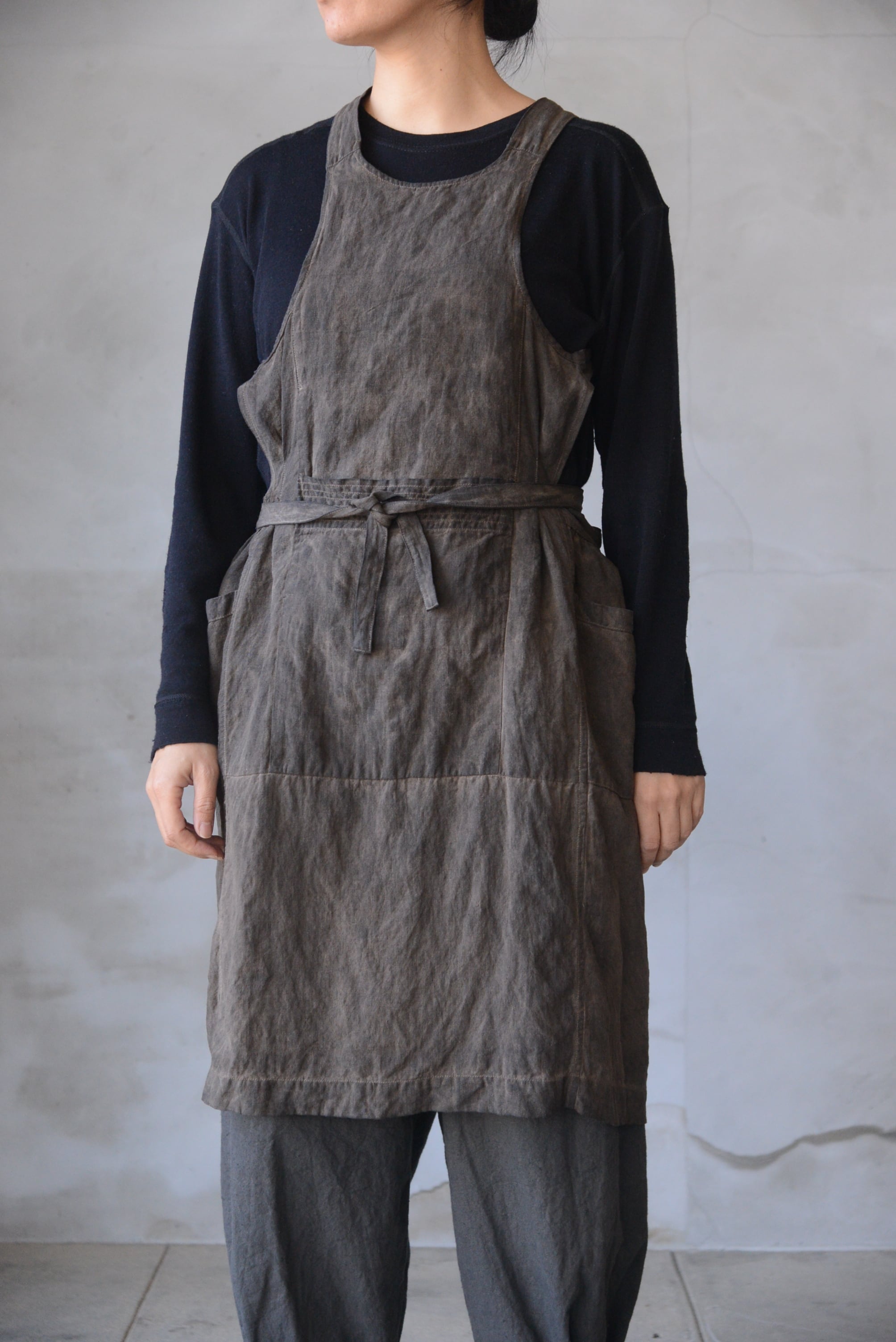 腹掛けエプロンドレス 柿渋鉄煤染【綿麻ショート】