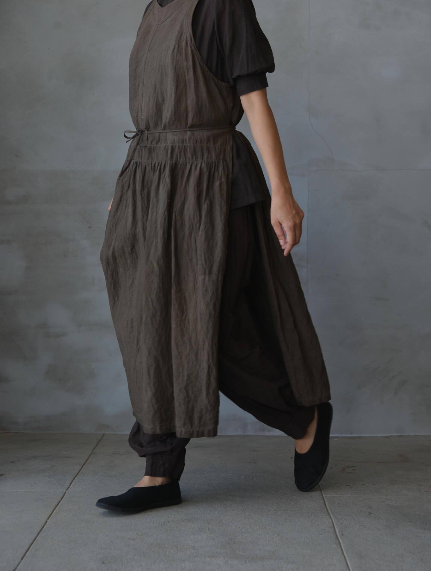 丸首ベストワンピース 【ミドル】柿渋鉄媒染 綿麻