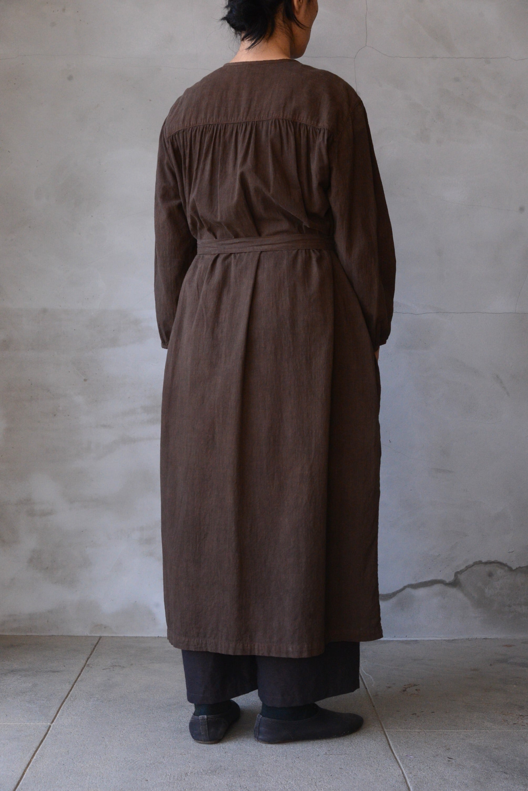 ウエスト紐が付属しており、前や横、後ろで結んだりとアレンジがきくため、ワンピースとしても羽織りとしても着られます。