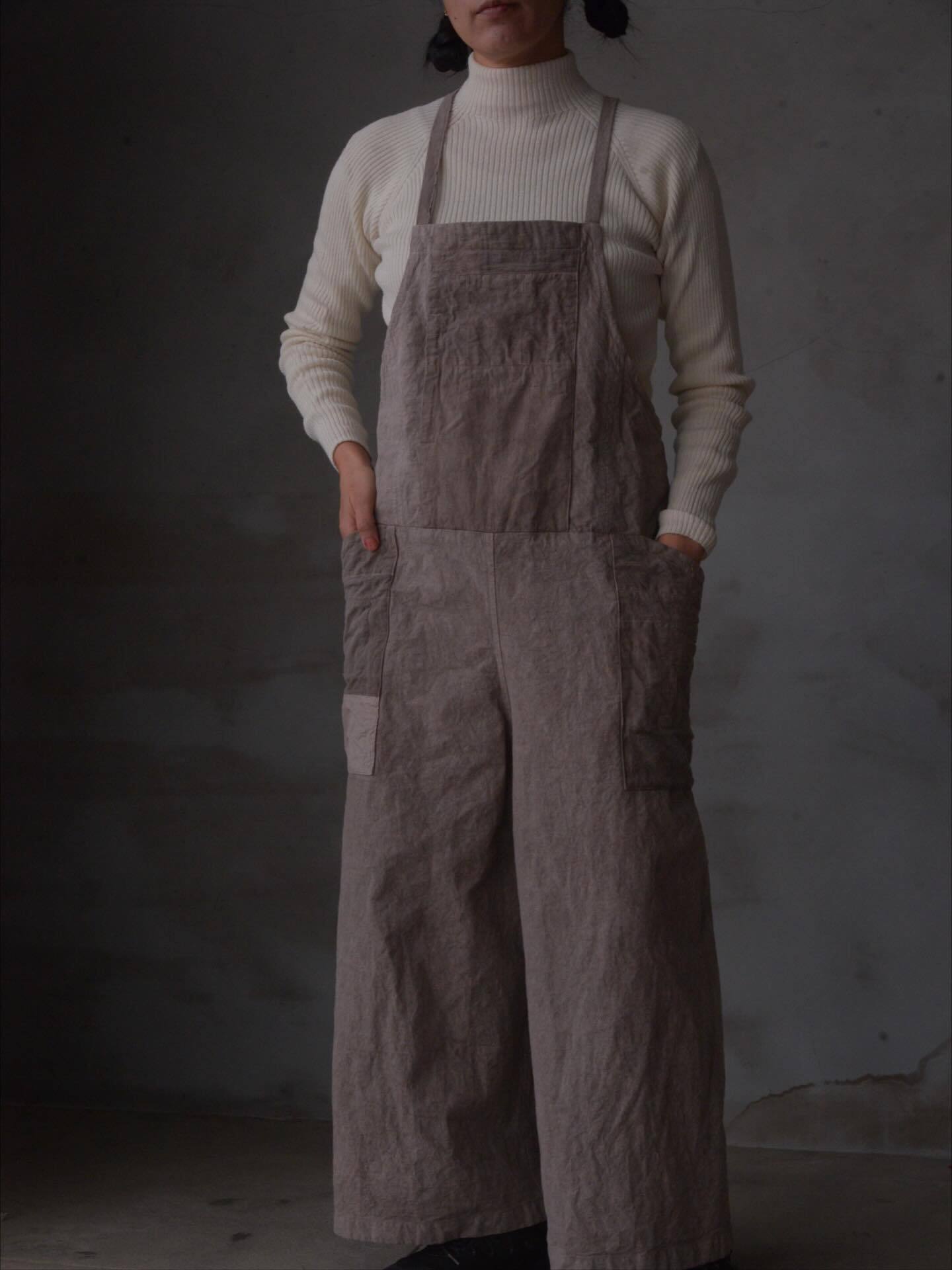 端切れワークサロペット 弁柄染め
