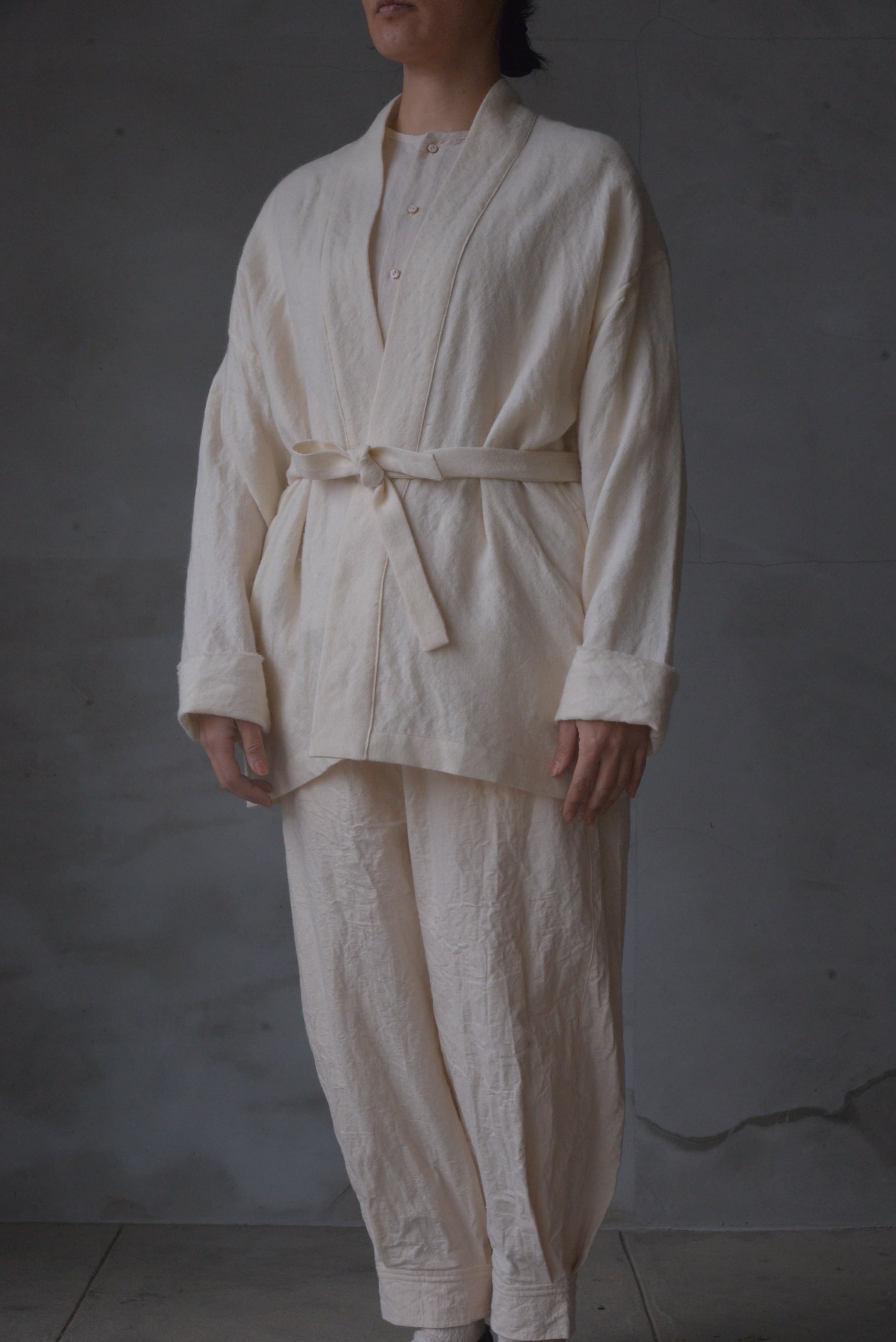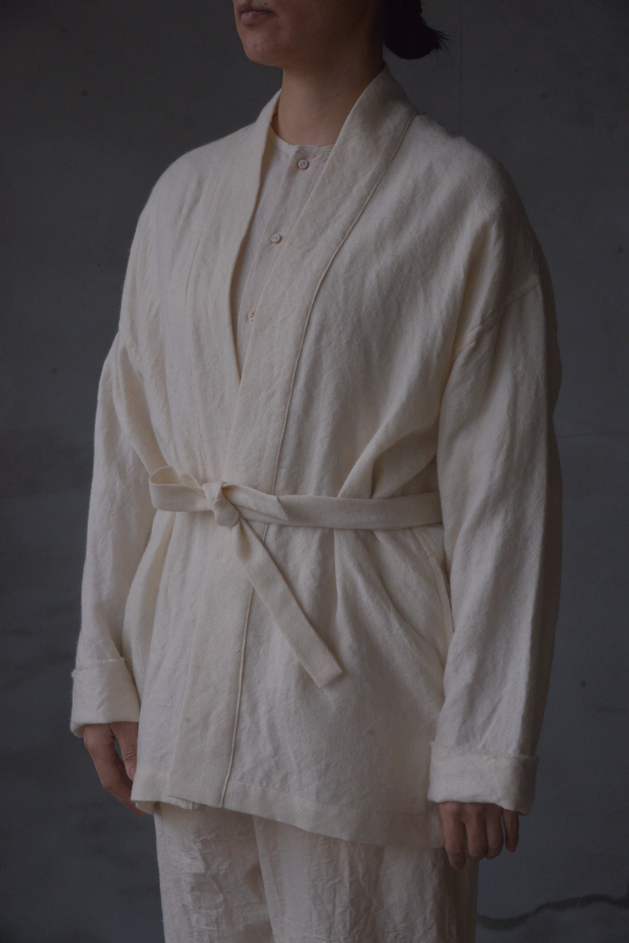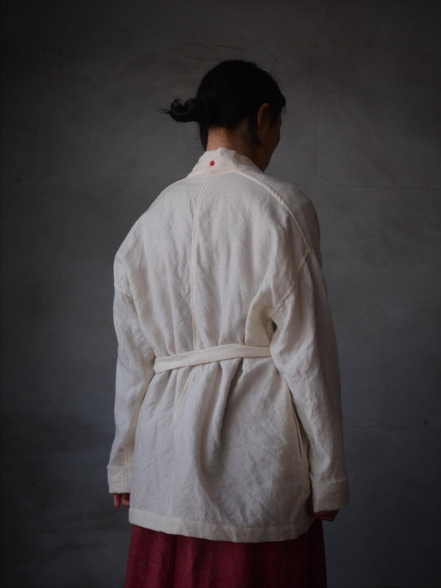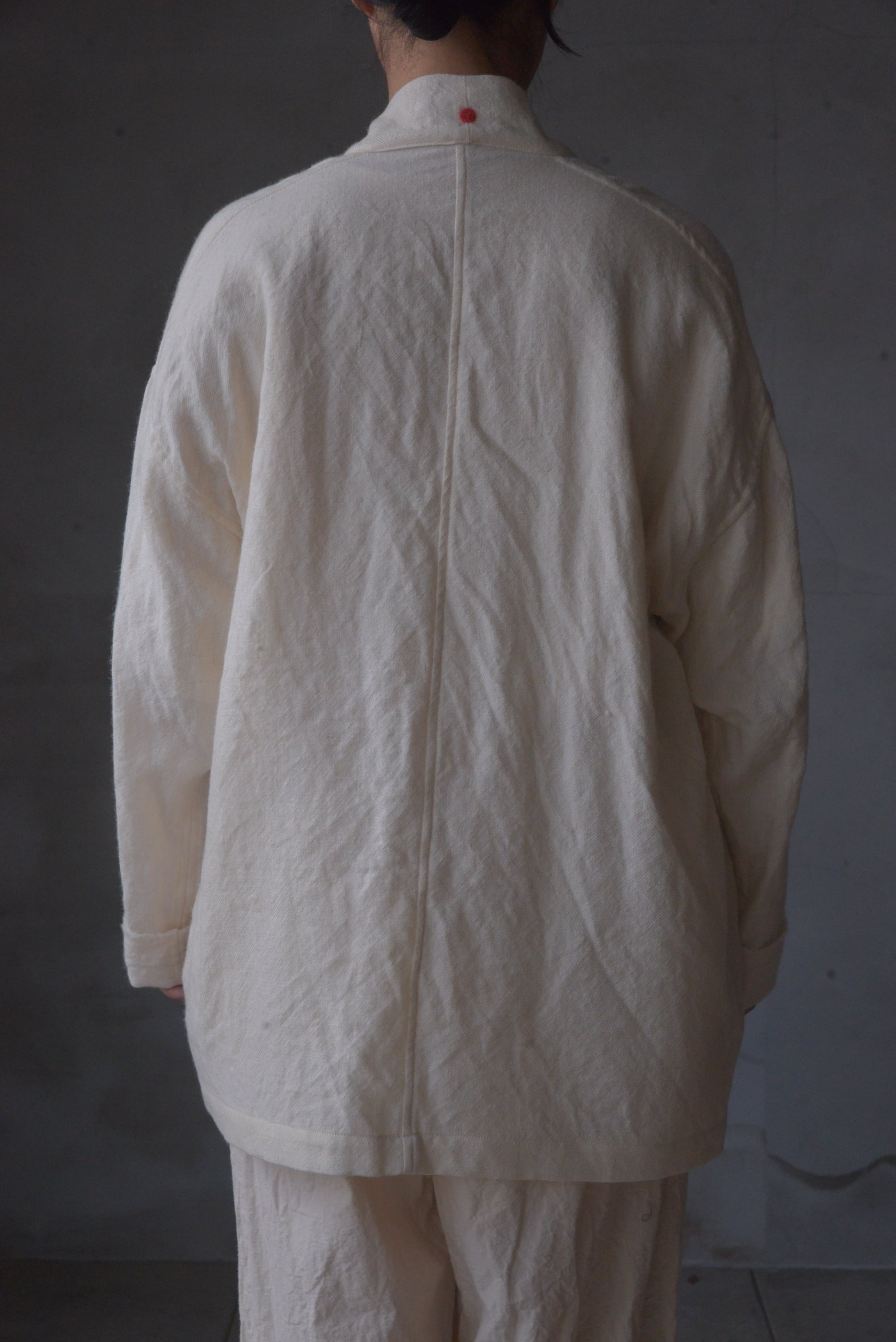 裏無しの一重の仕様、平面的なゆとりのある作りで、下に着こんだりさらっと一枚でも着やすく長いシーズン活躍する一枚です。