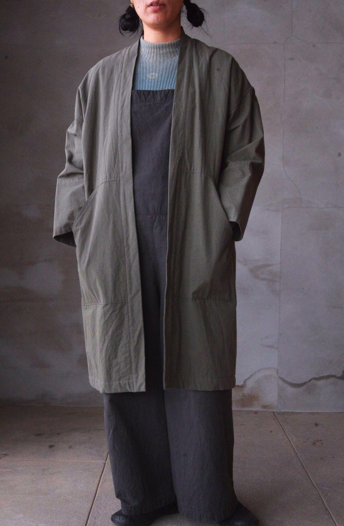 身頃にはウールの裏が、袖は裏無しの一重の仕様、平面的なゆとりのある作りで、下に着こんだりさらっと一枚でも着やすく長いシーズン活躍する一枚です。