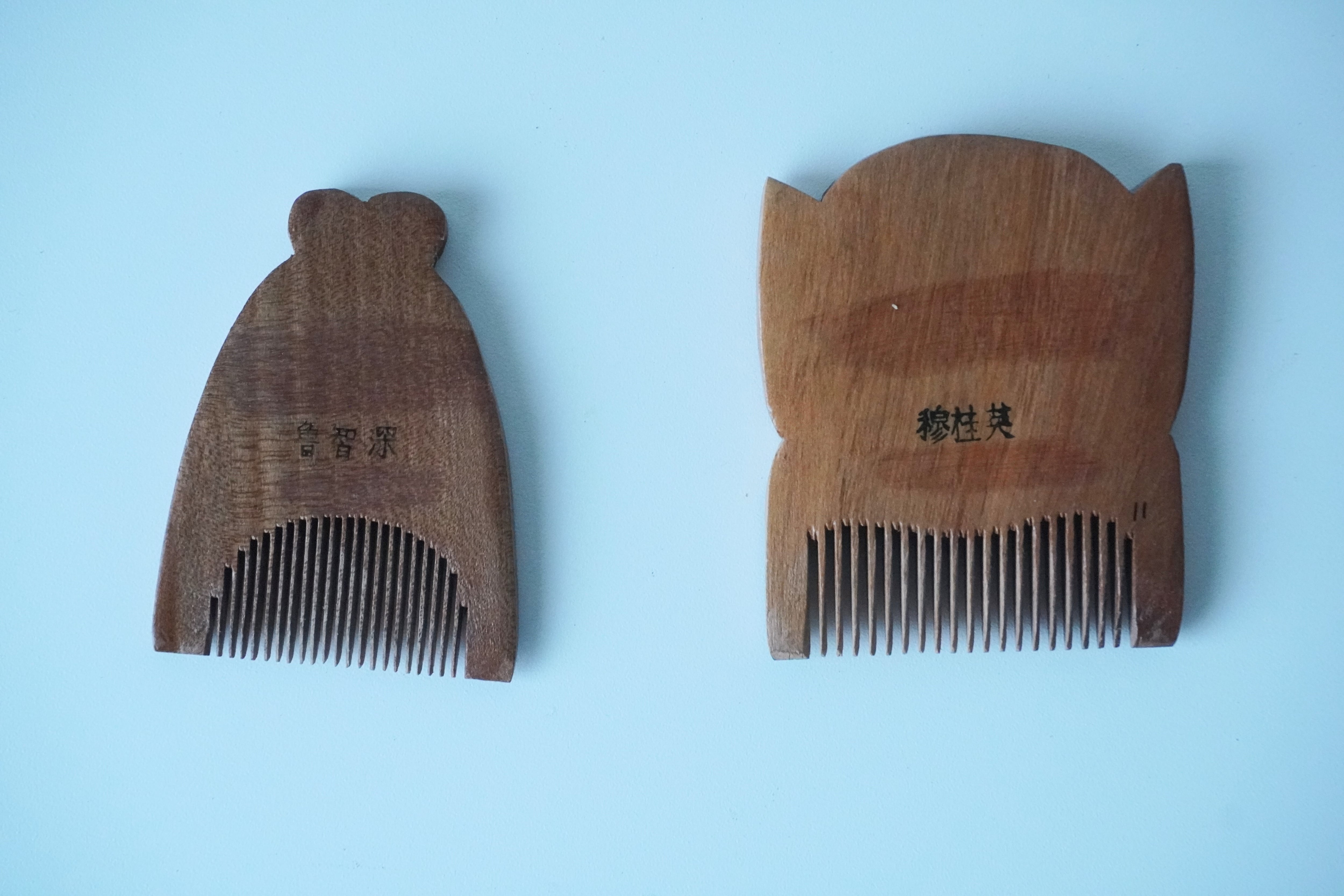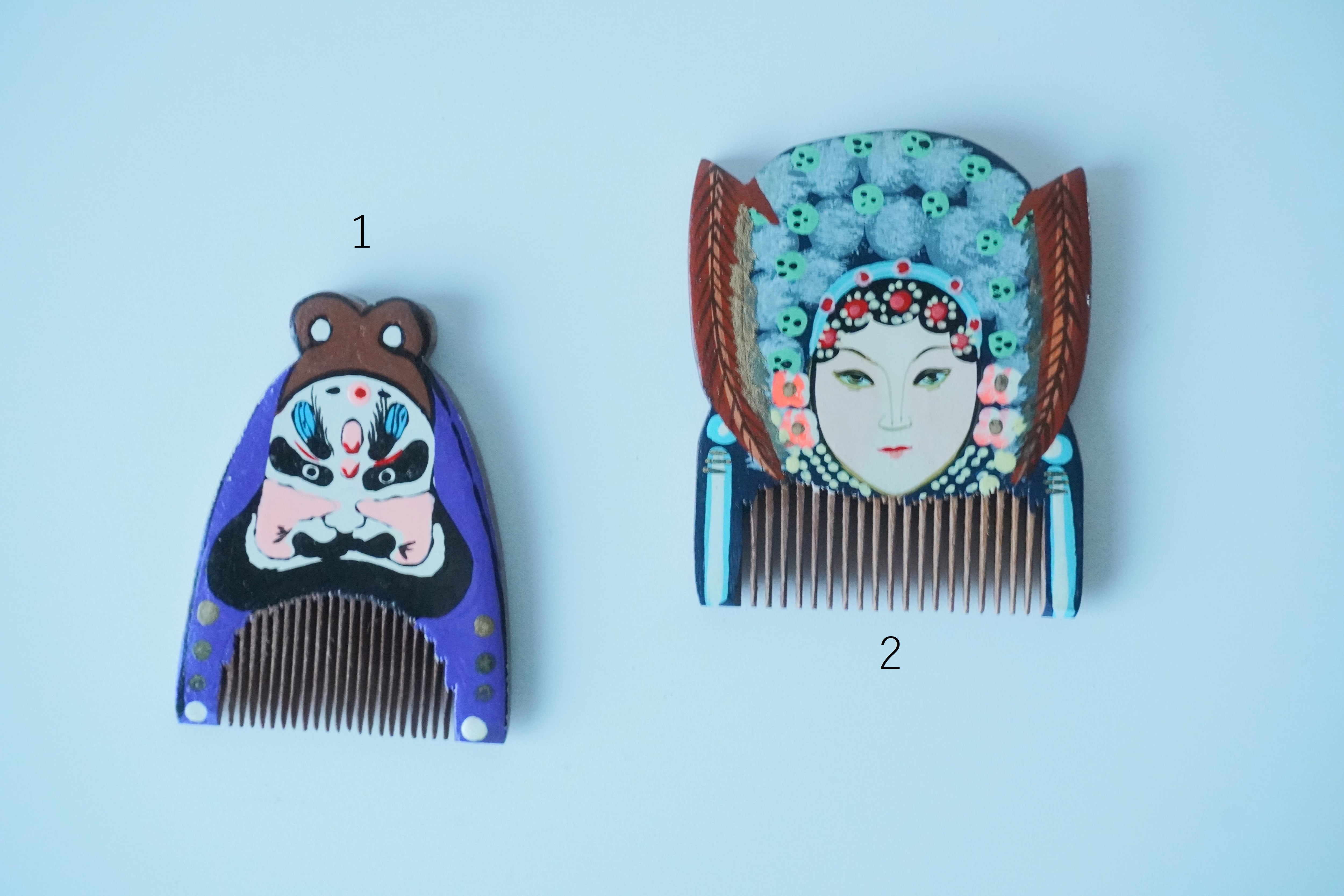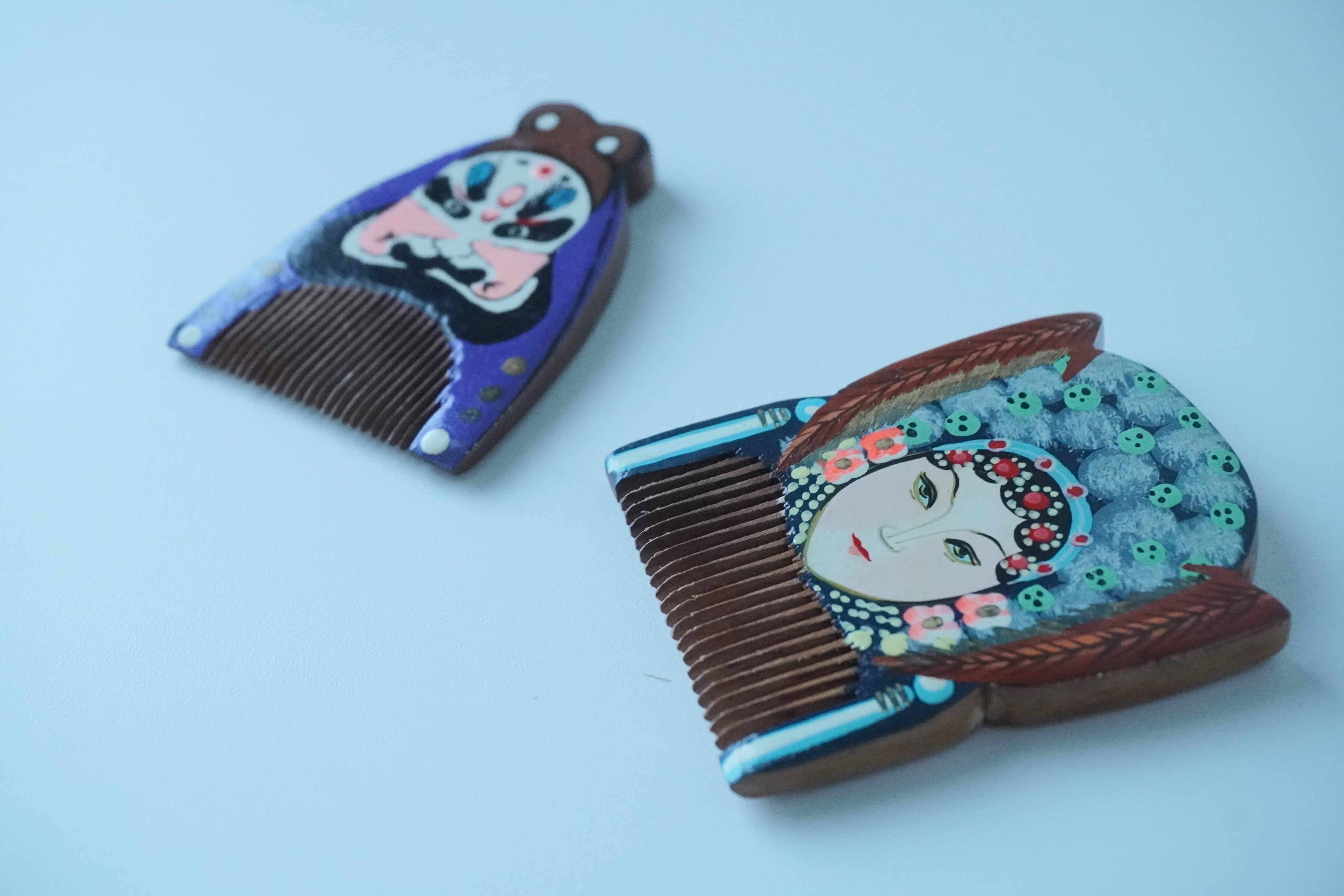 これは京劇の女形、男形をモチーフにした手櫛。