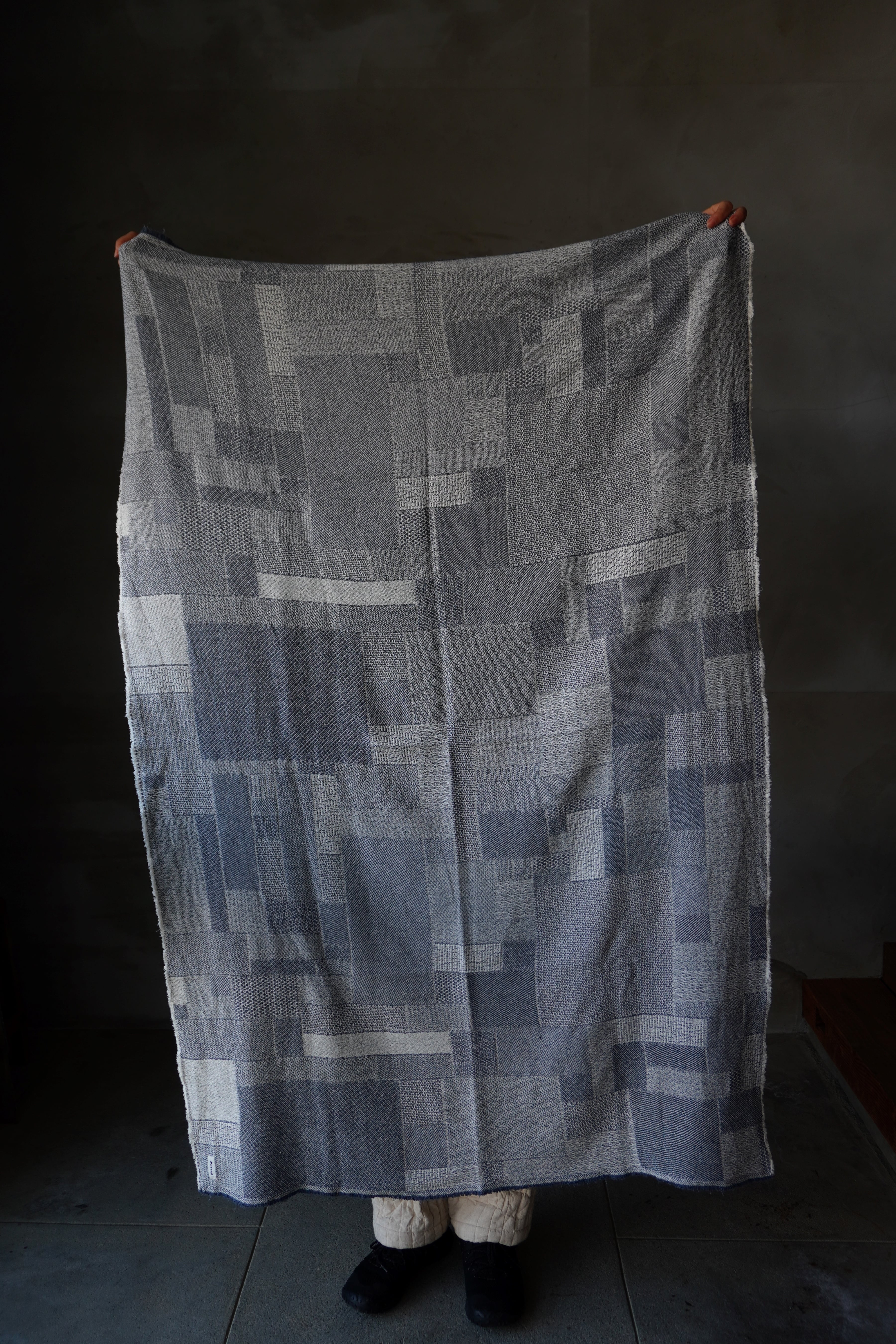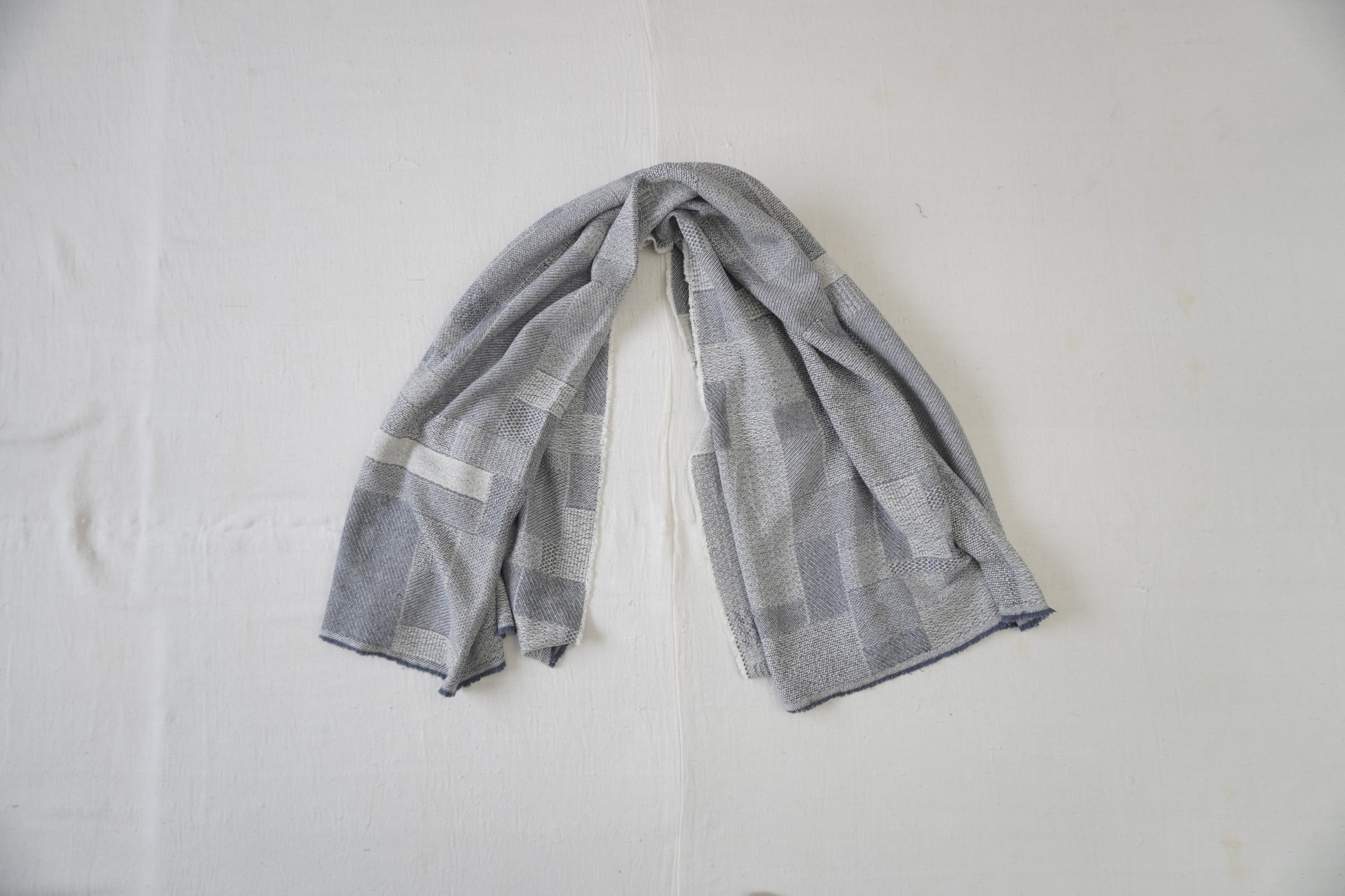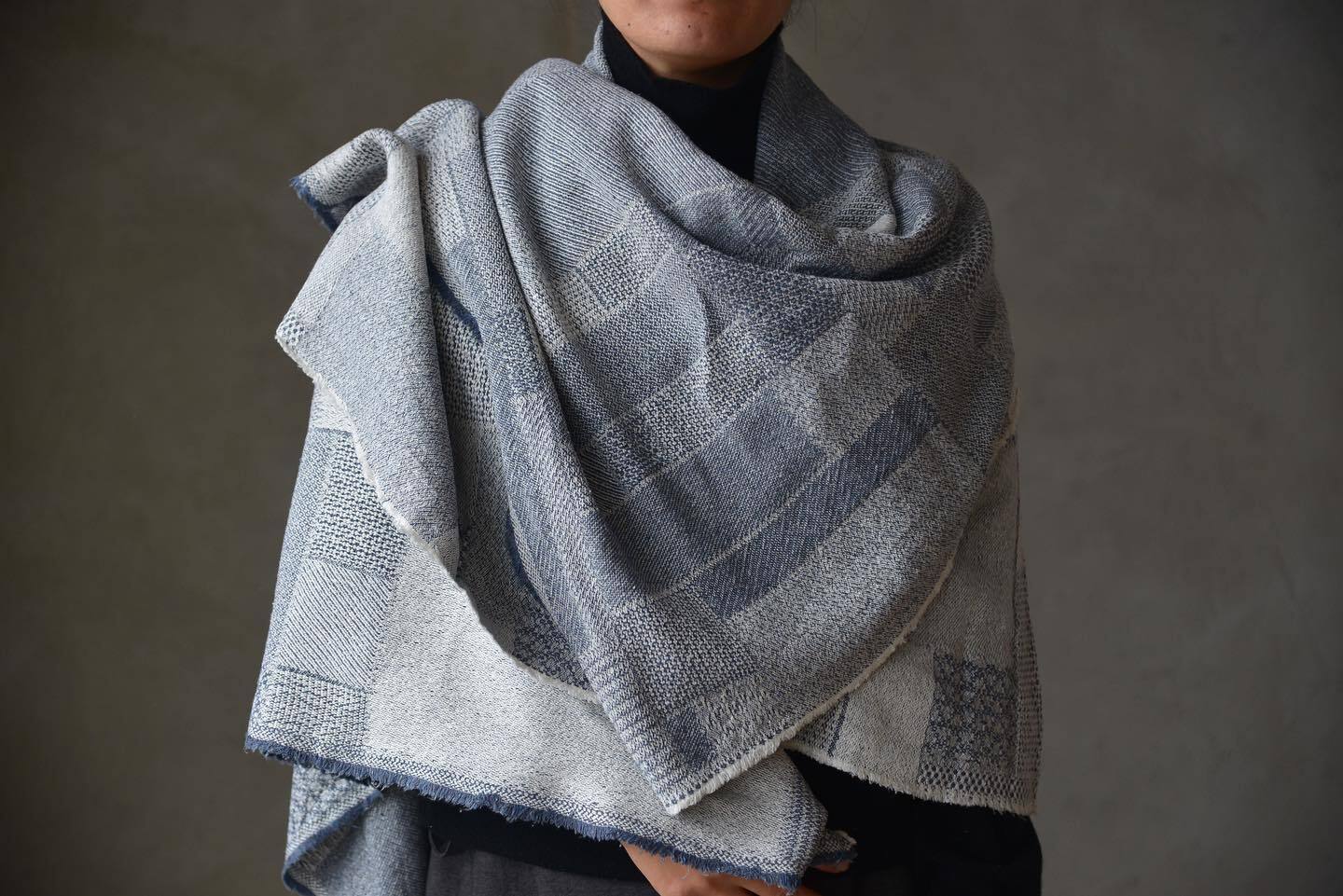14種類のパターンの柄を組み合わせたジャガード織りで、使い方や折り方によって柄の出方や印象が変わります。