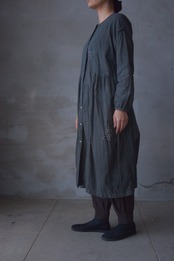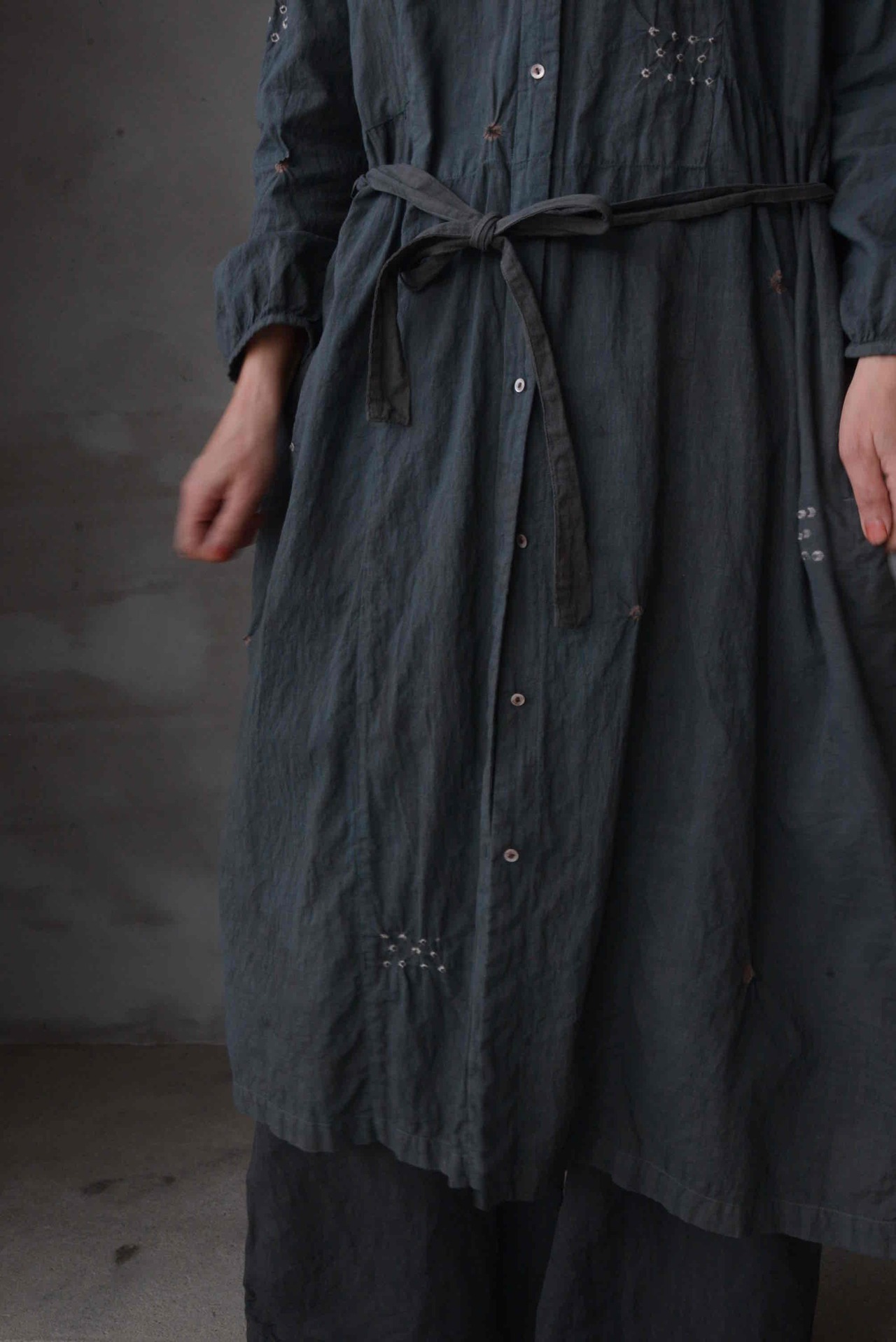 スモックワンピース 【ミドル丈】藍×阿仙薬 *Unique Piece