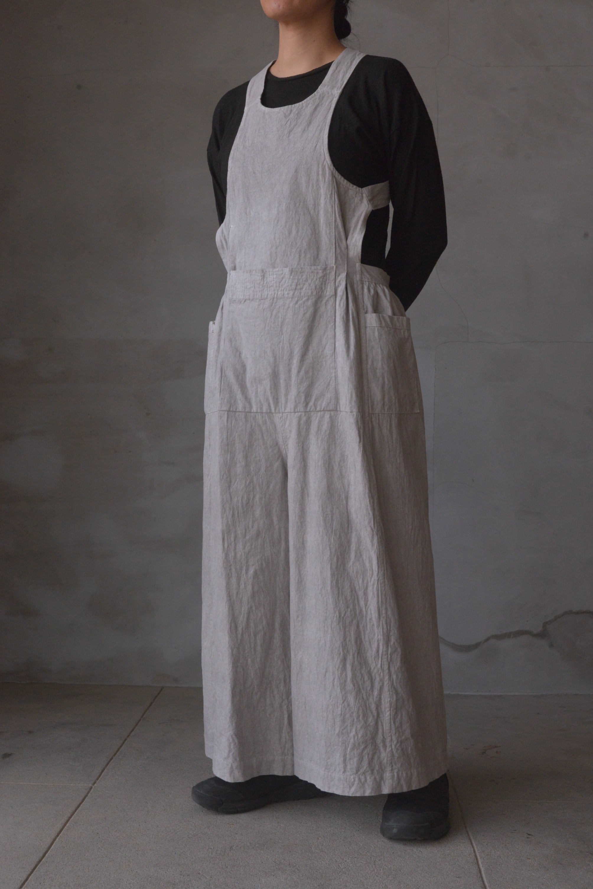 腹掛けエプロンパンツ 弁柄染 薄灰 【パンツタイプ】