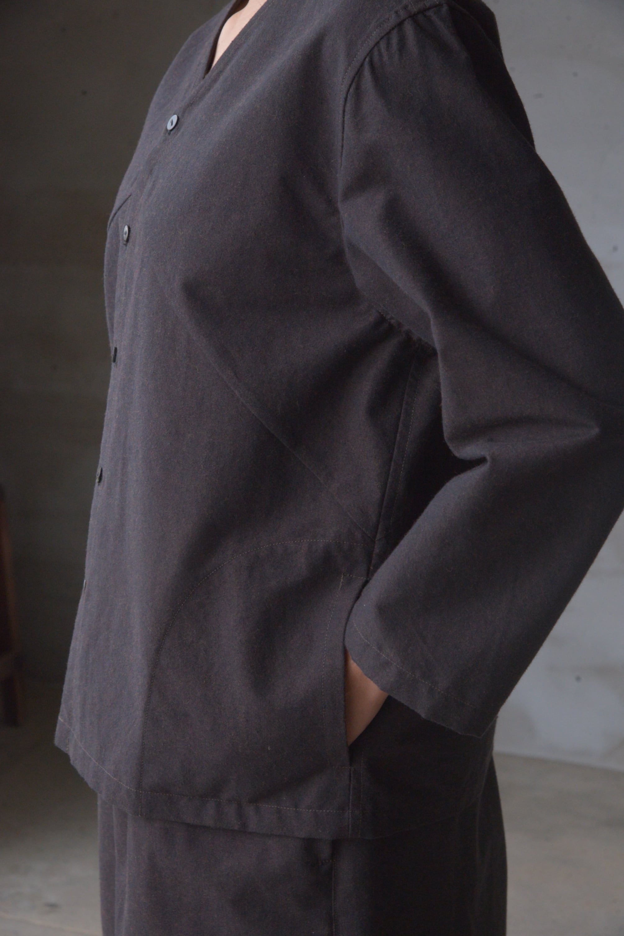 生地をしっかりとした綿ウールで製作することでジャケットの様にも着られるものになりました。