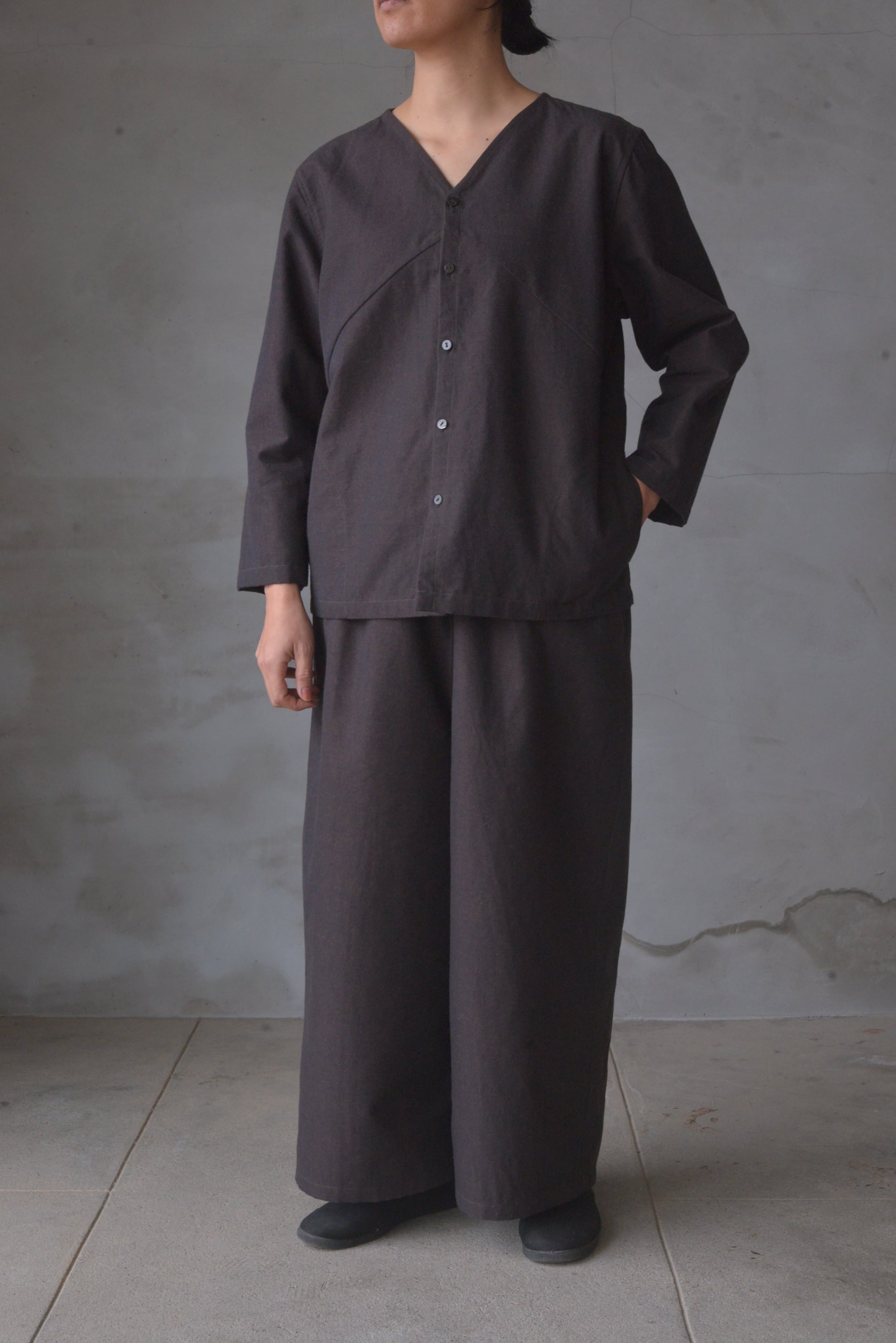 ベトナムの市場でよく見かけた日常着、『アオババ』というシャツや、着物の下に着る長襦袢から着想したシャツ。