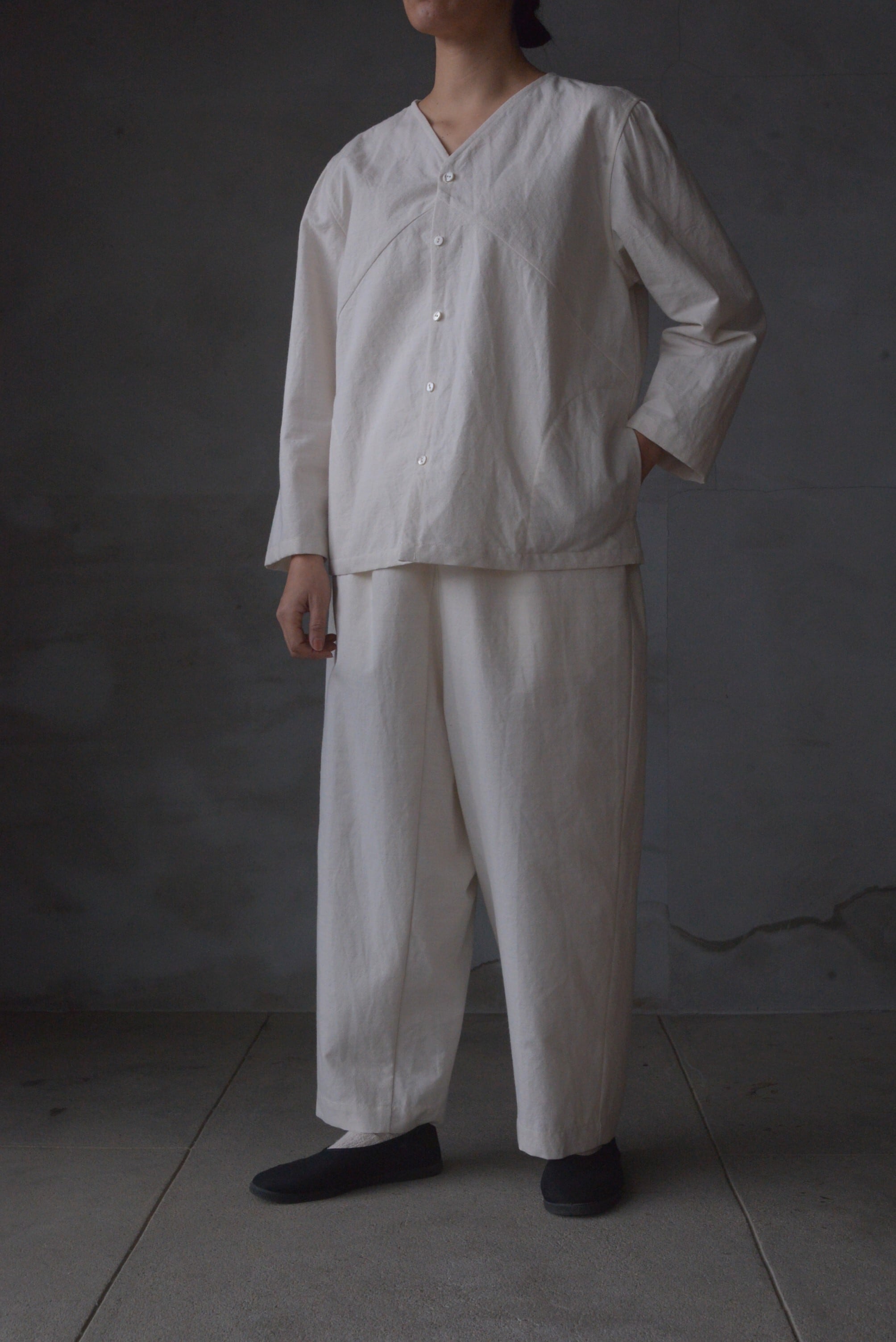 ベトナムの市場でよく見かけた日常着、『アオババ』というシャツや、着物の下に着る長襦袢から着想したシャツ。