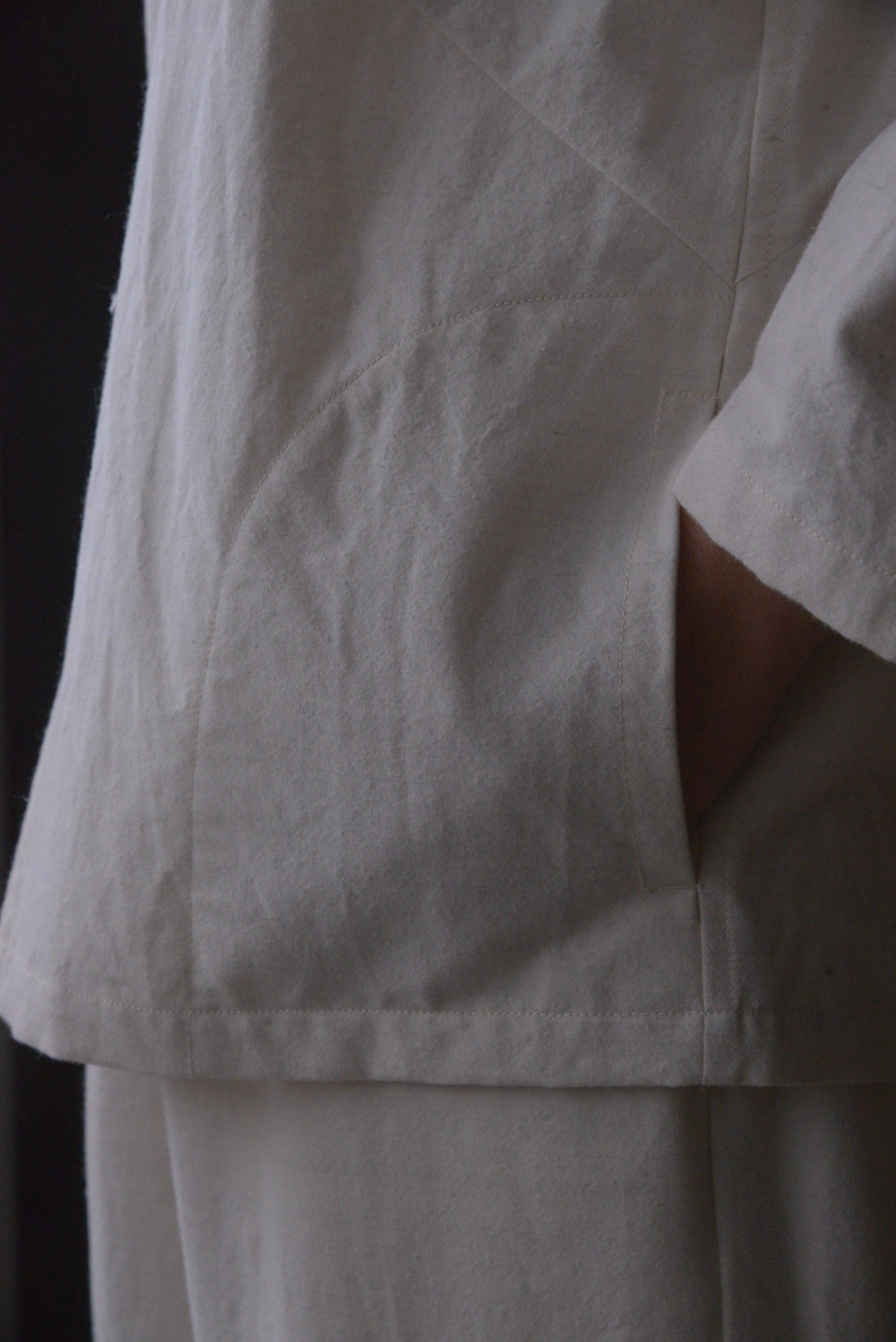 シンプルだけど、美しく見える切替えや仕様についても探り、修正を繰り返し、着るとスッキリ綺麗に見える形です。