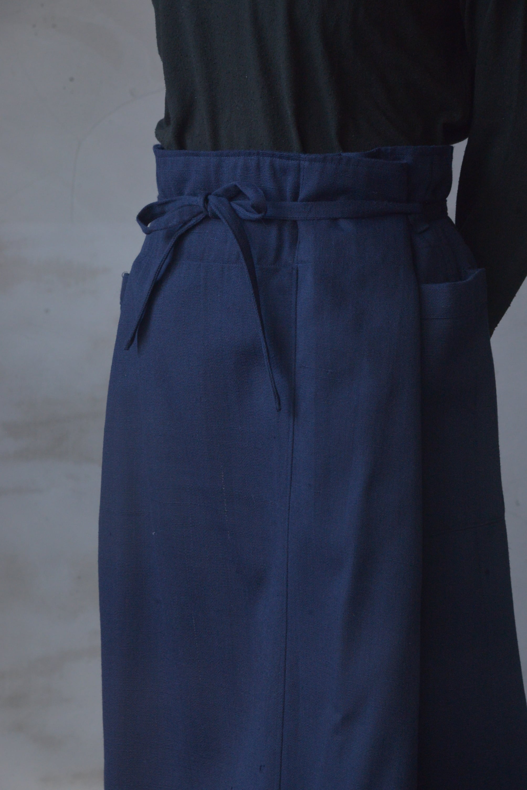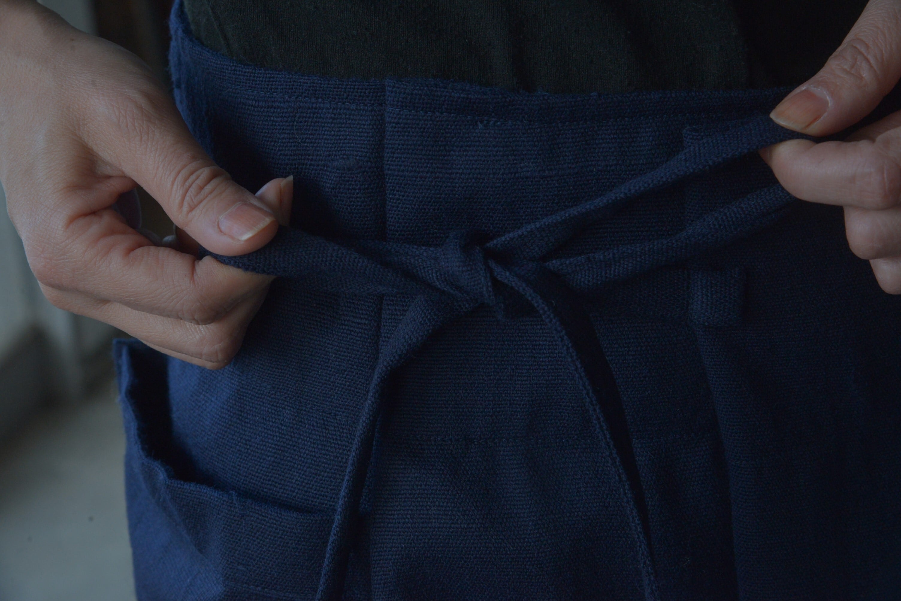 あまり分を横で結んだり、後ろに結んだり、ウエストを織り上げたり、クシュっとしたり、一着でアレンジがきいて雰囲気を変えられます。左右どちらでたたむかだけでも雰囲気が変わります。