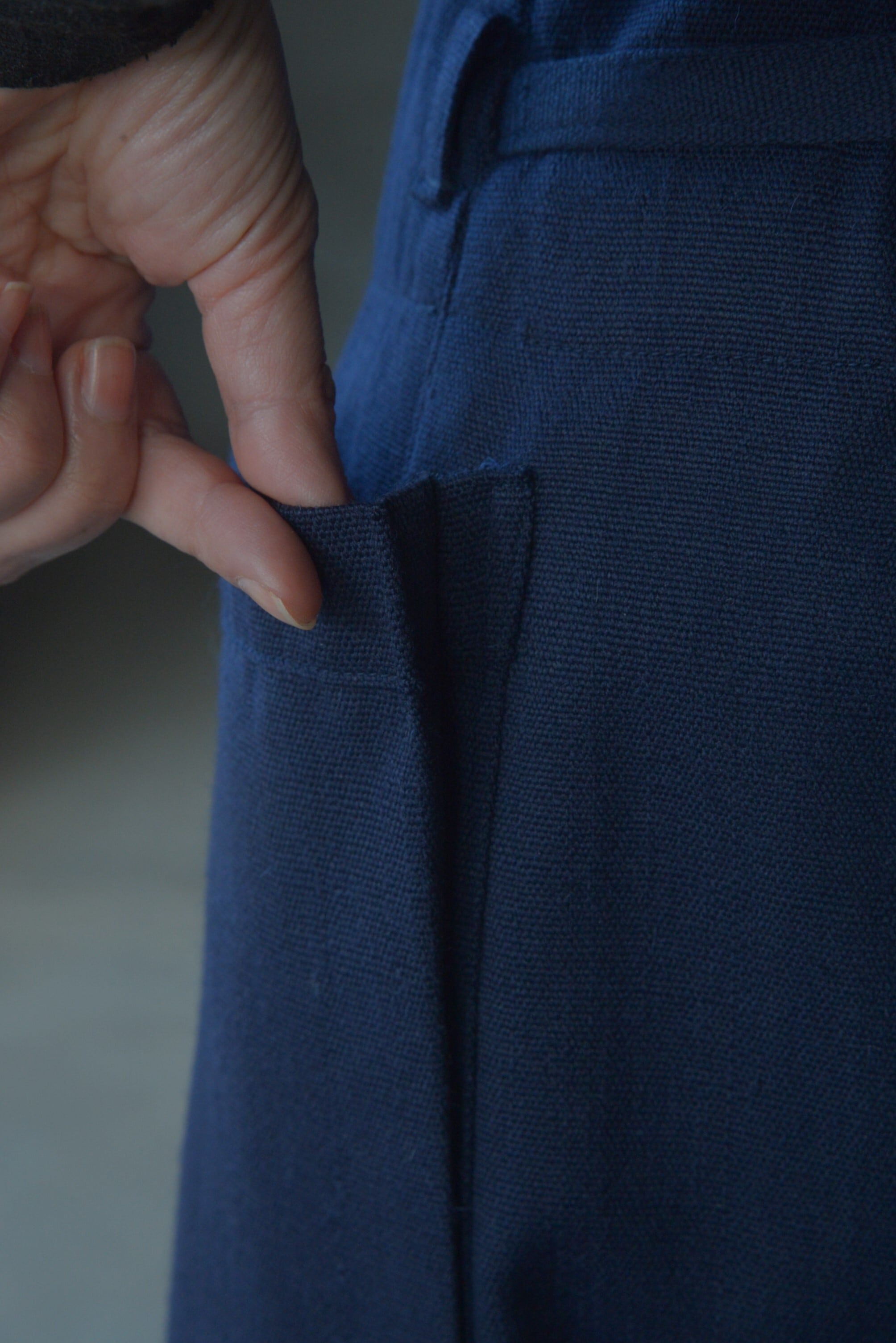 生地はインドの旅で仕入れてきた、手織りのウール生地。