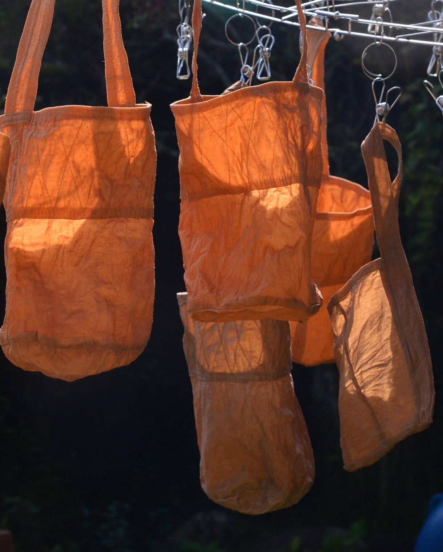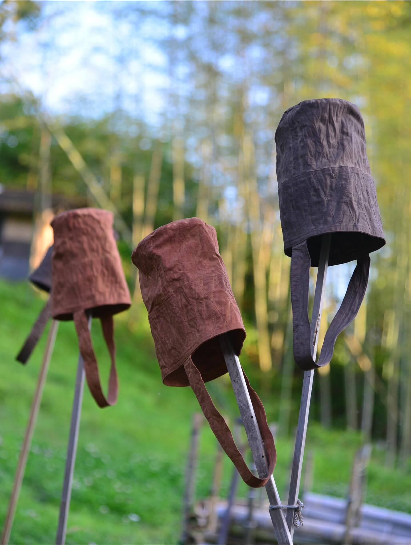柿渋染めを施しており、来る日も来る日の繰り返し染めては干すことで少しずつ濃くなっていきます。