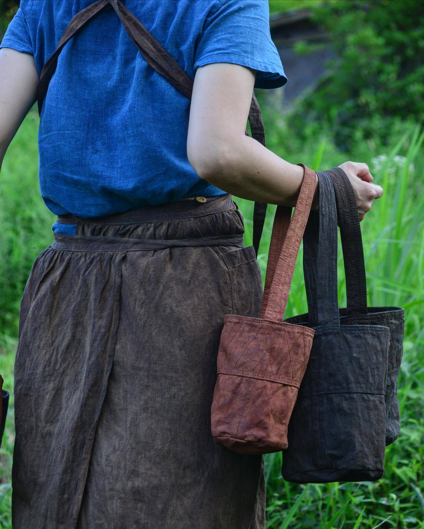 それぞれに不揃い一つだけの表情。染めも形も底のステッチなどそれぞれ個性的です。