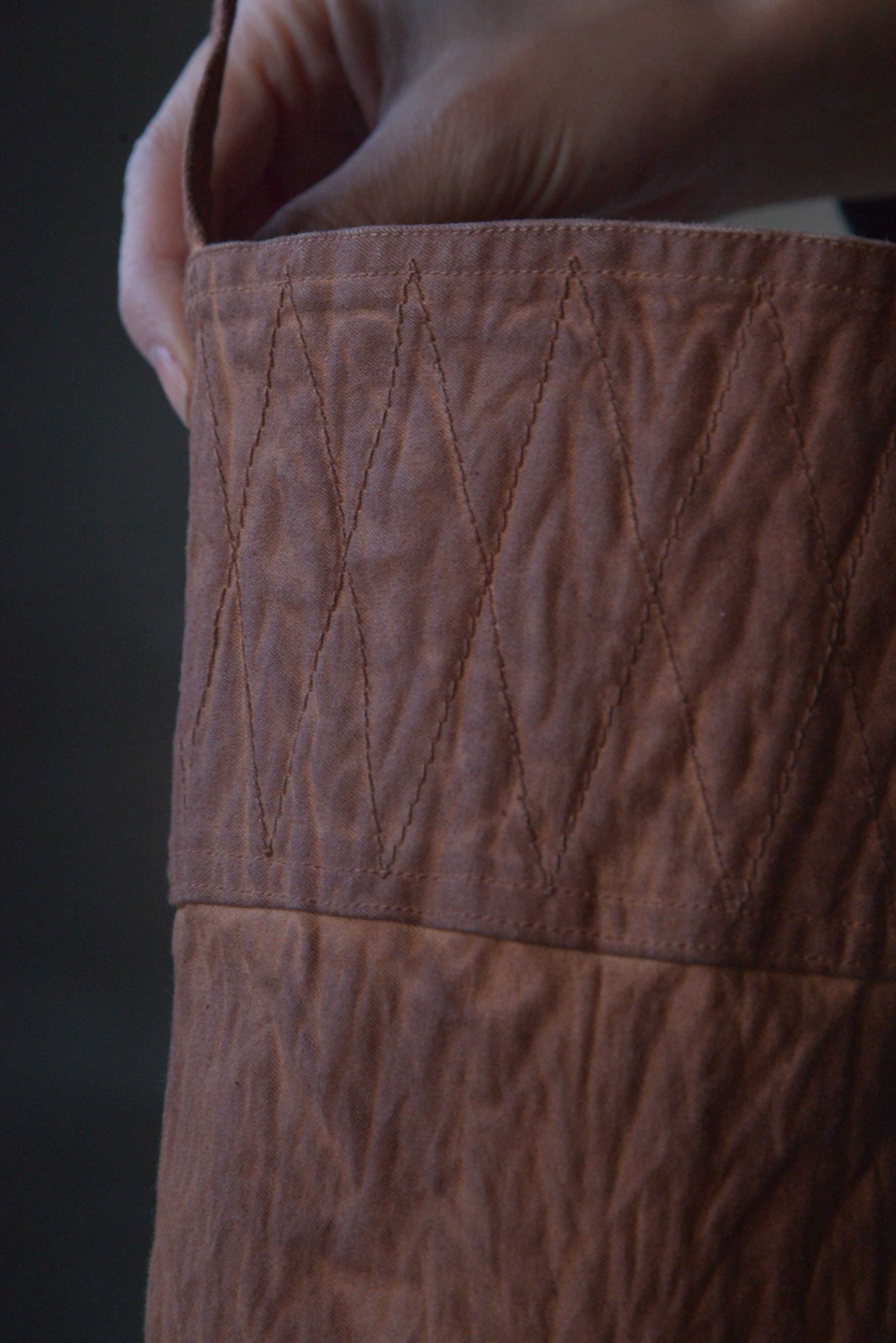 柿渋は使い込むと摩擦でジーンズの様なアタリが出てきますので経年変化を楽しめる方におすすめいたします。