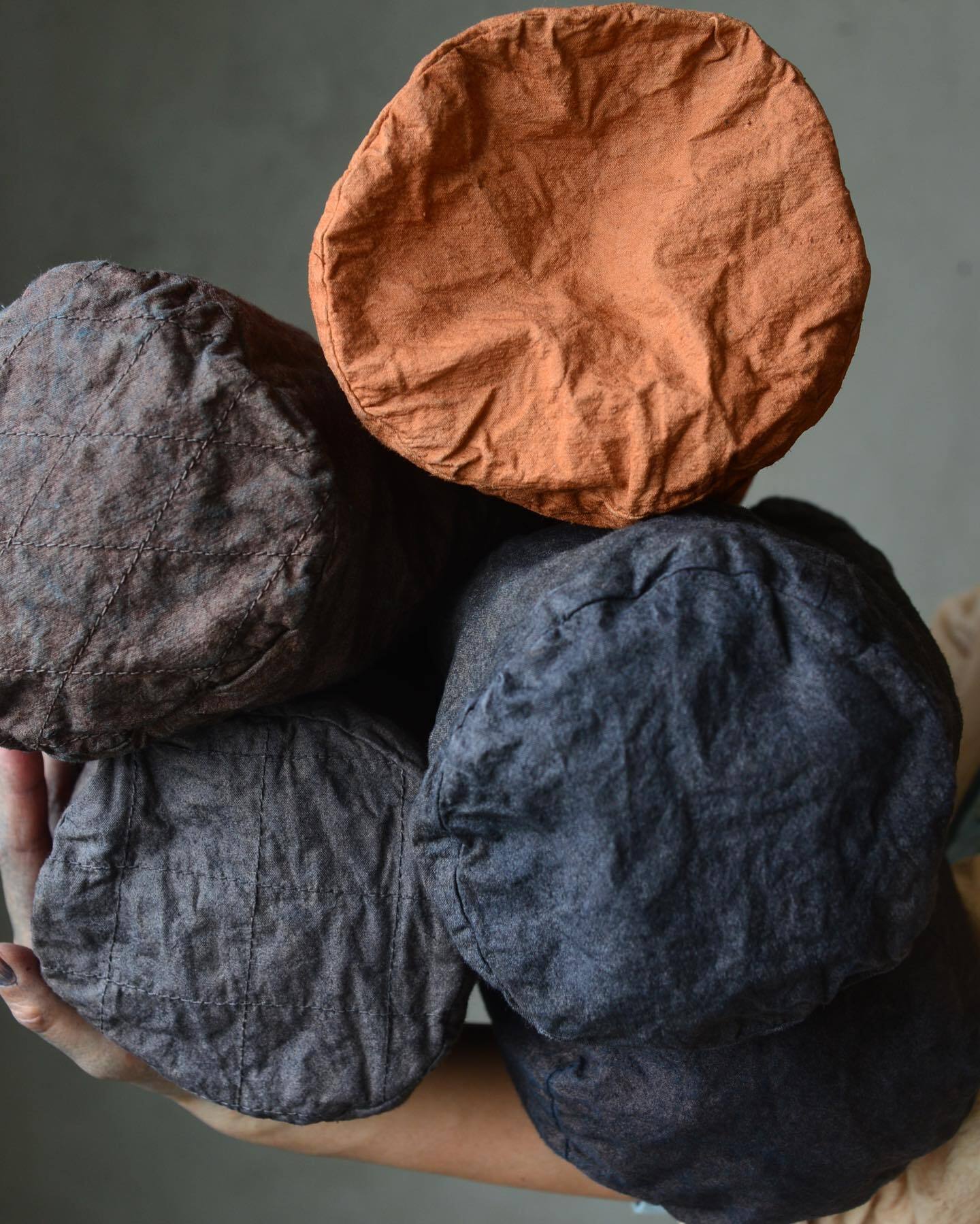 それぞれに不揃い一つだけの表情。染めも形も底のステッチなどそれぞれ個性的です。