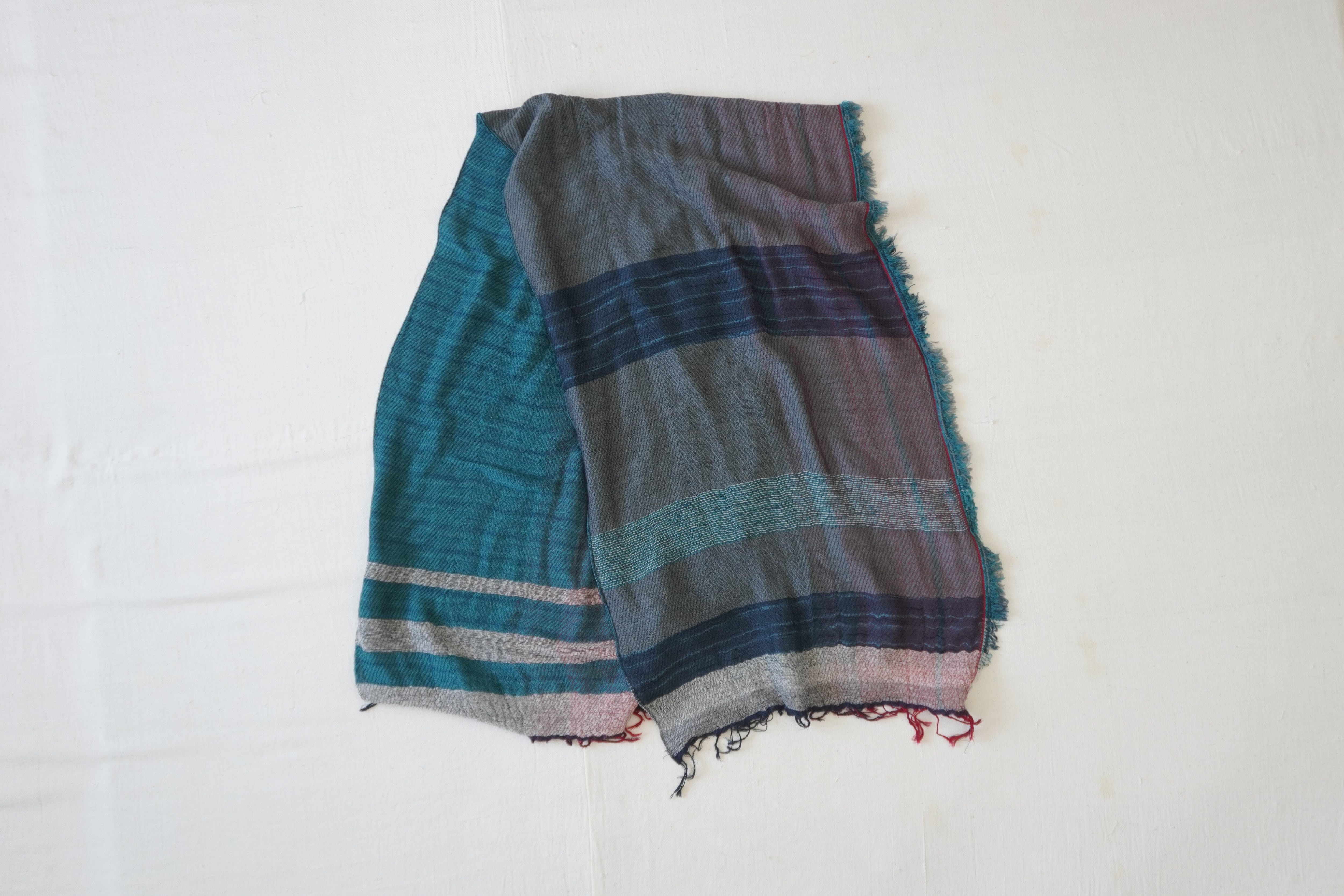 播州織の盛んな地域で、旧式の織機で低速に空気を含みやすい構造で織られたストールは、