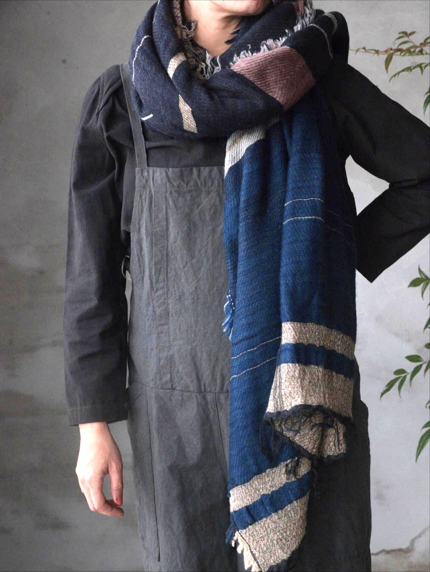 播州織の盛んな地域で、旧式の織機で低速に空気を含みやすい構造で織られたストールは、