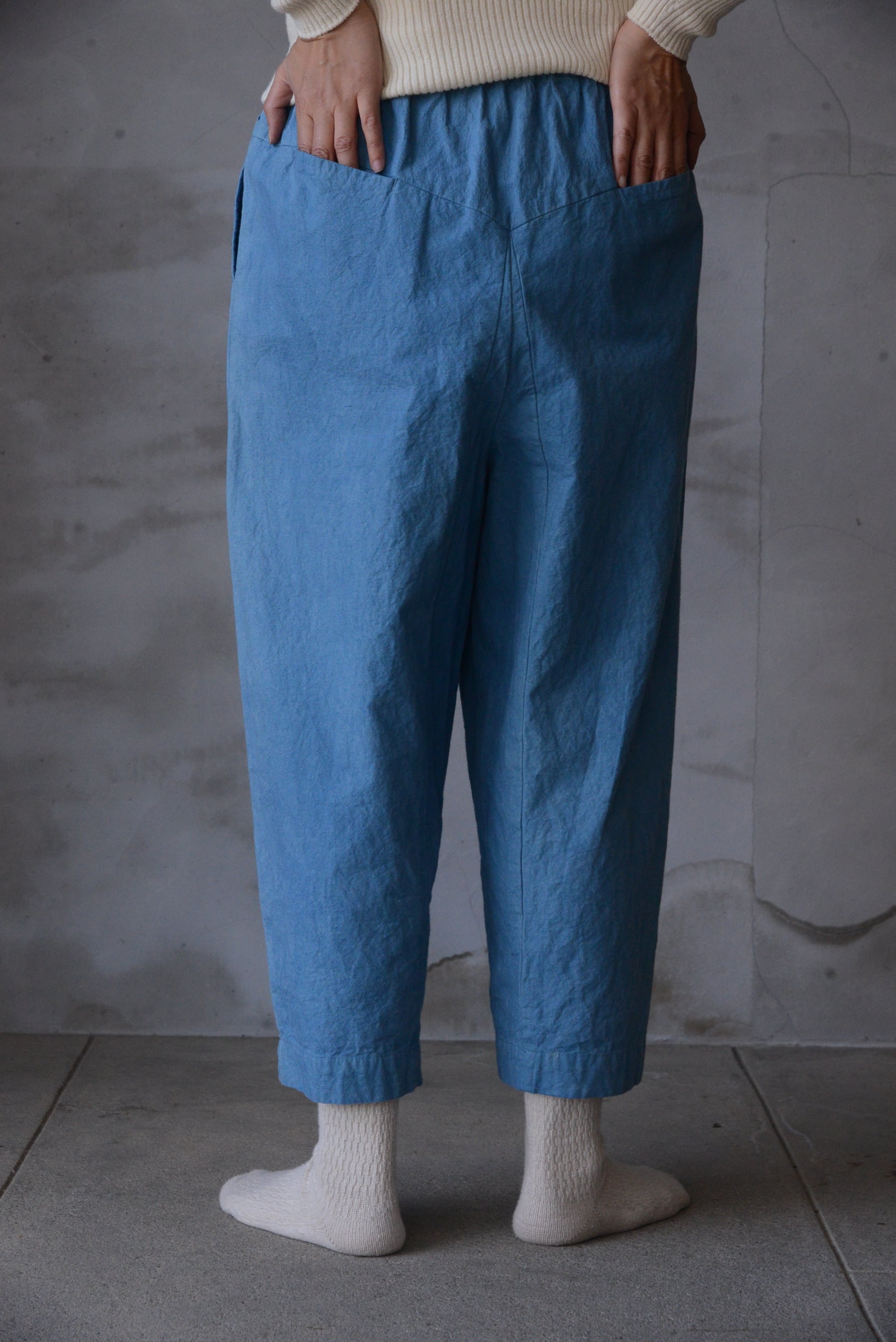 寒い季節は風通しの少なく、暑い季節は肌に張り付くことなく空気の層ができて涼しく着ることができ年中、長期で活躍するパンツです。