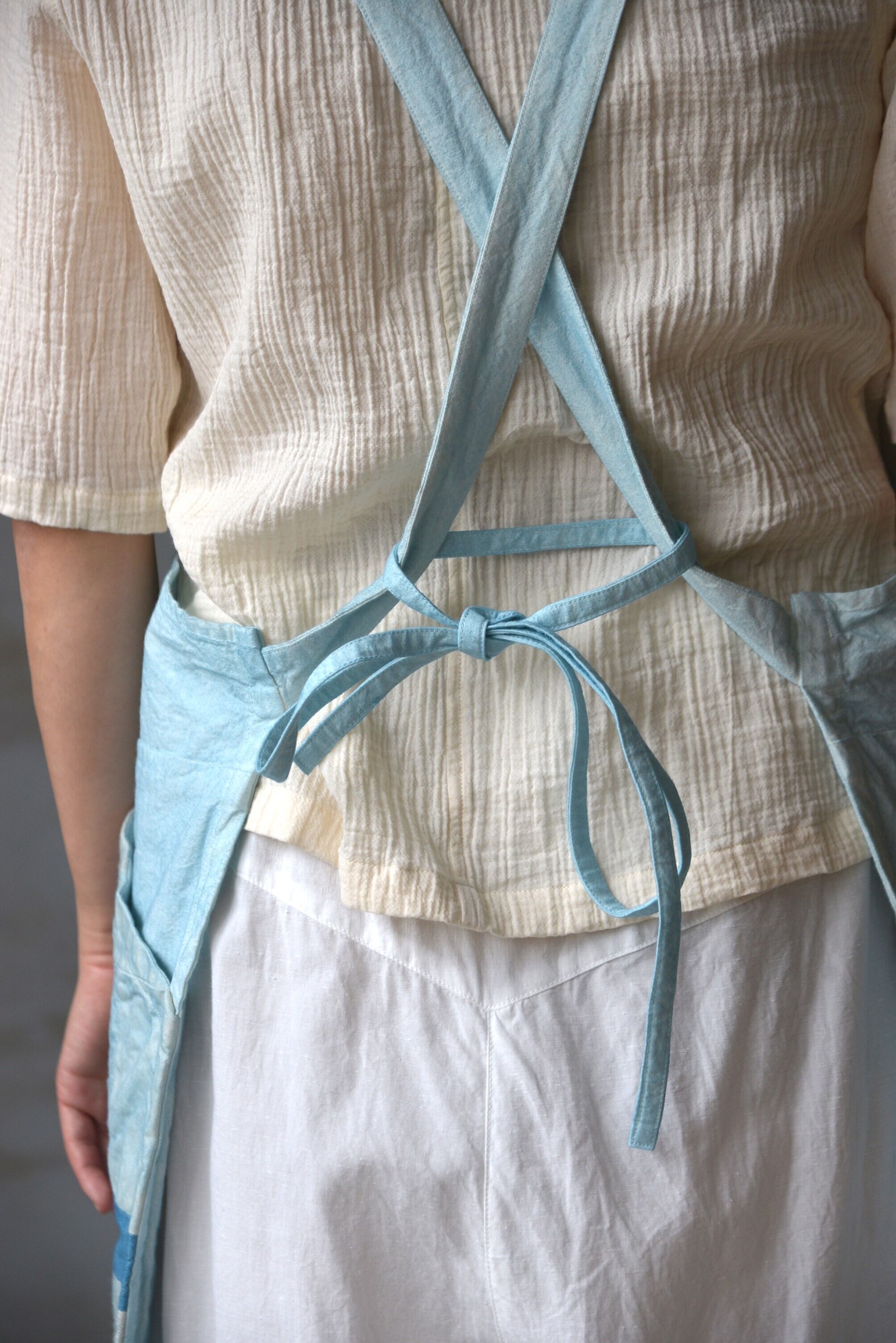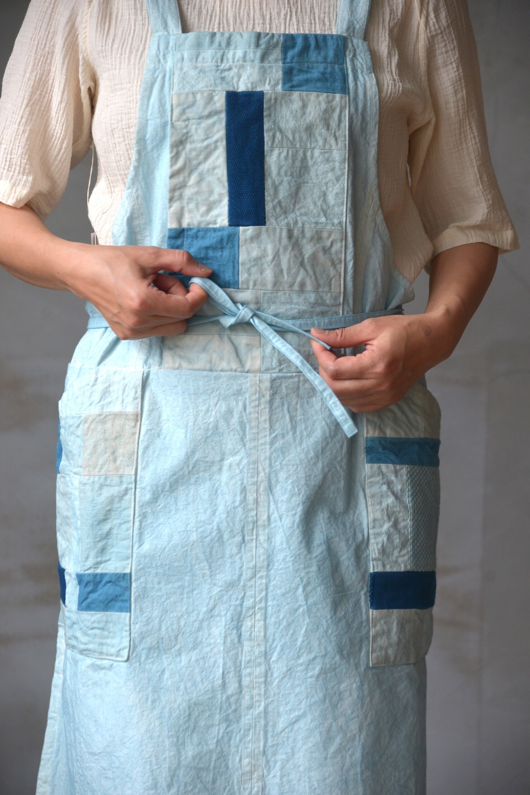 端切れワークエプロン【ミドル】薄藍染め×藍端切れ