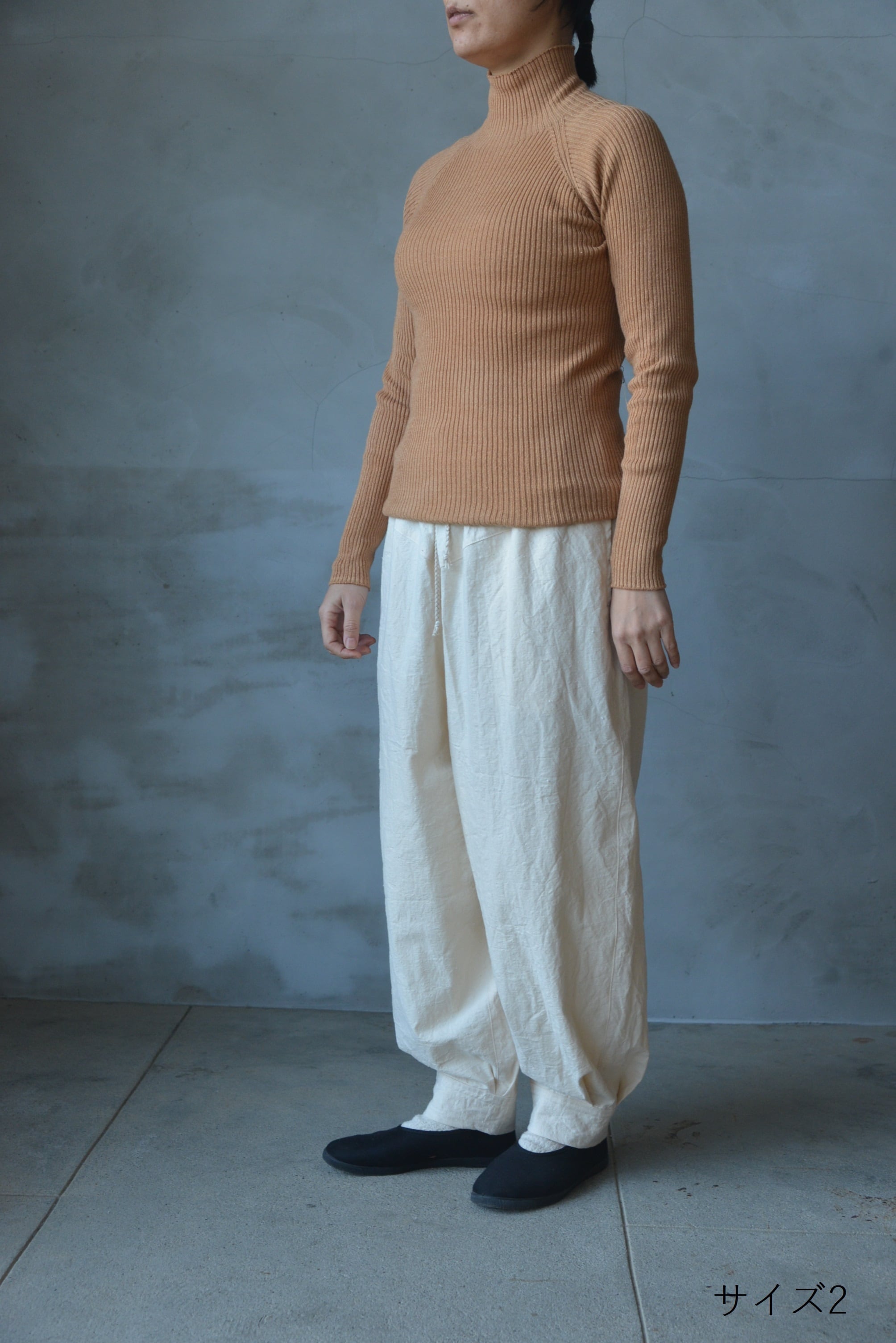 サイズは2サイズ展開で、てとてびとの服と合わせて着られる事、肌に近くで着ることを想定して割と細身のシルエットですが、着ている内に少しずつ馴染んできます。
