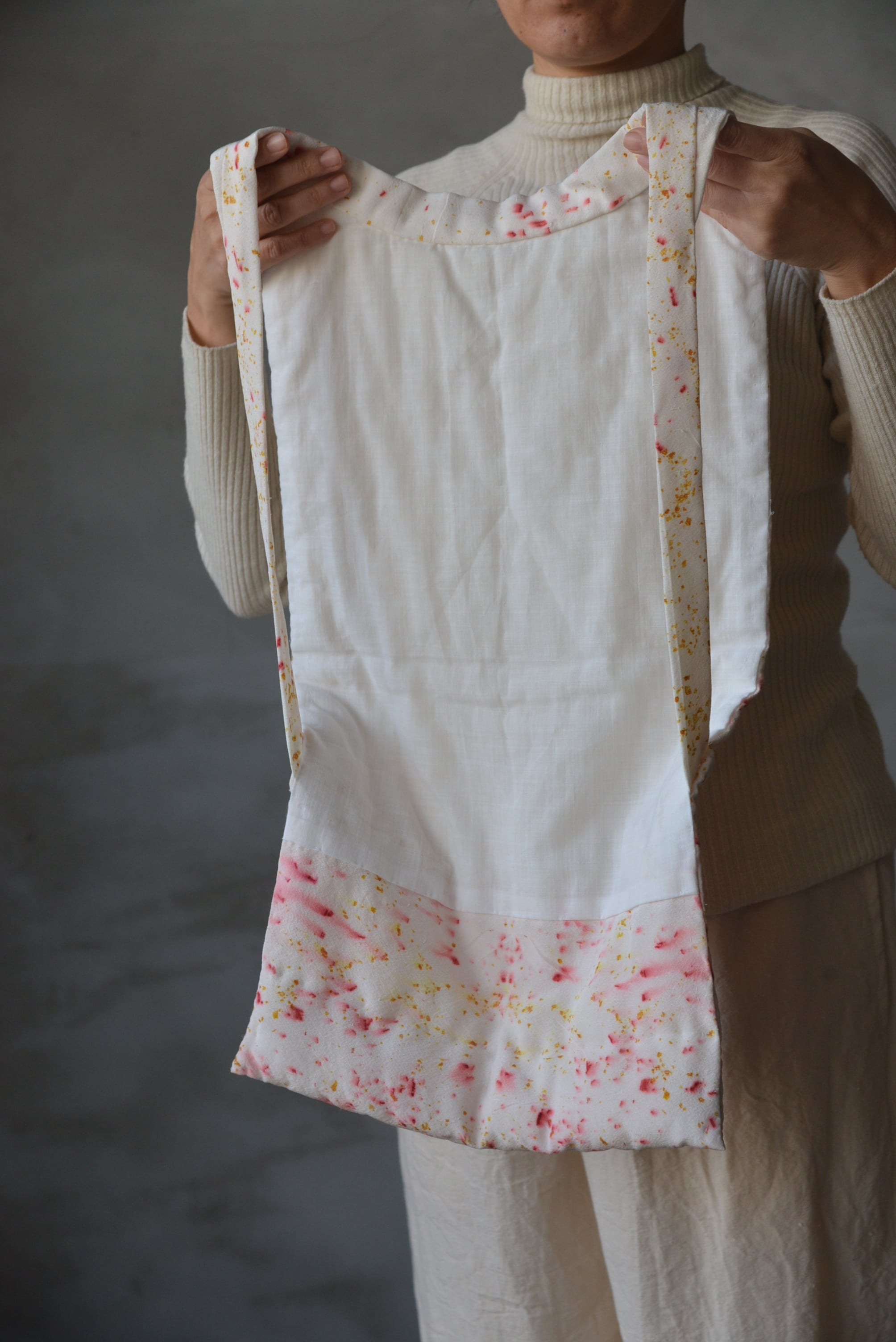 端切れの生地は薄手の綿、裏にはインドで購入した絹の生地、どちらもとても軽いので、こちらは背負った時にとても軽ろやかで、背負っているのも忘れるほどでどちらもそれぞれ魅力があります。