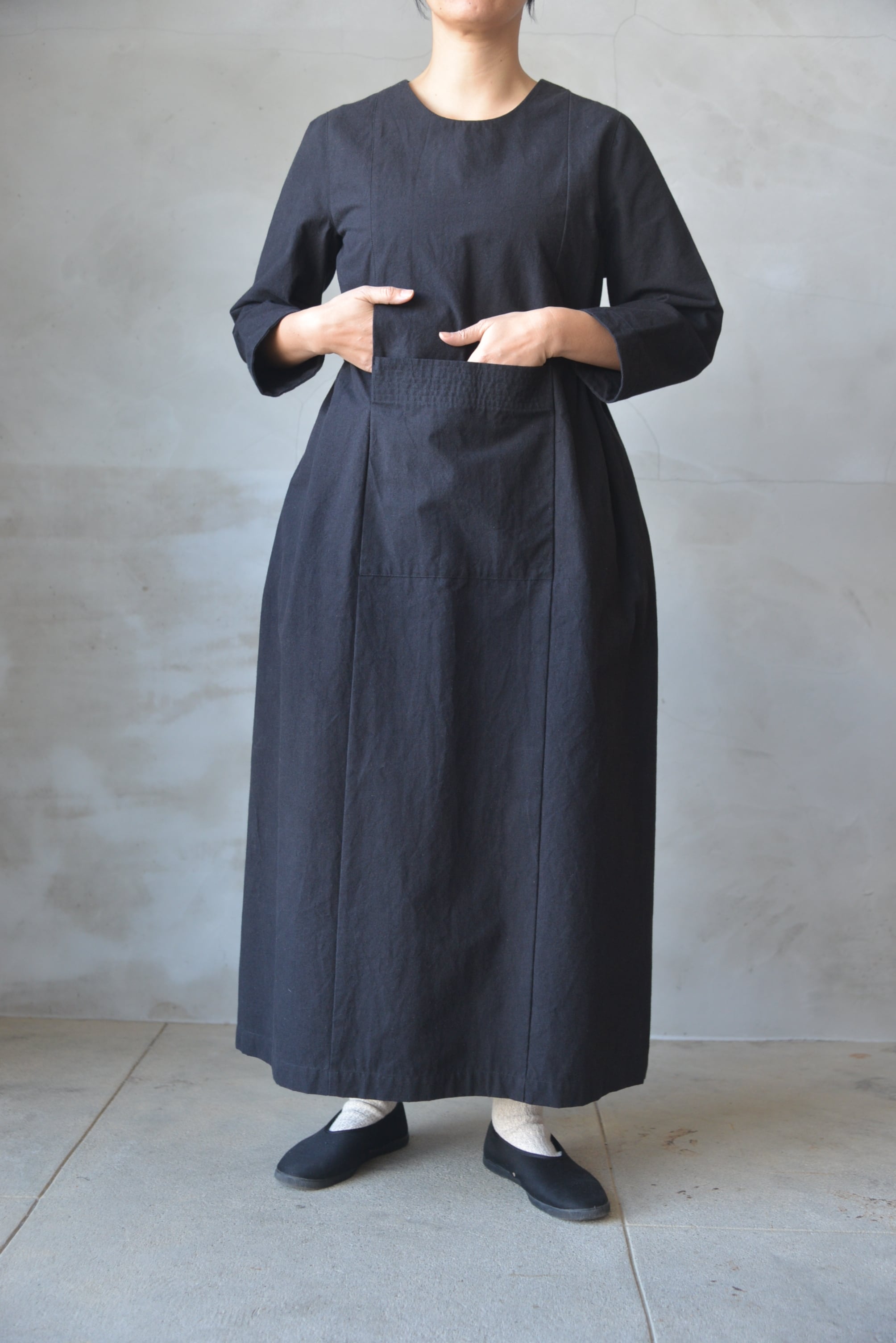 エプロンドレスにある腰のポケットは省き、こちらのワンピースにもポケットはお腹内側と外側に一つずつ付いています。