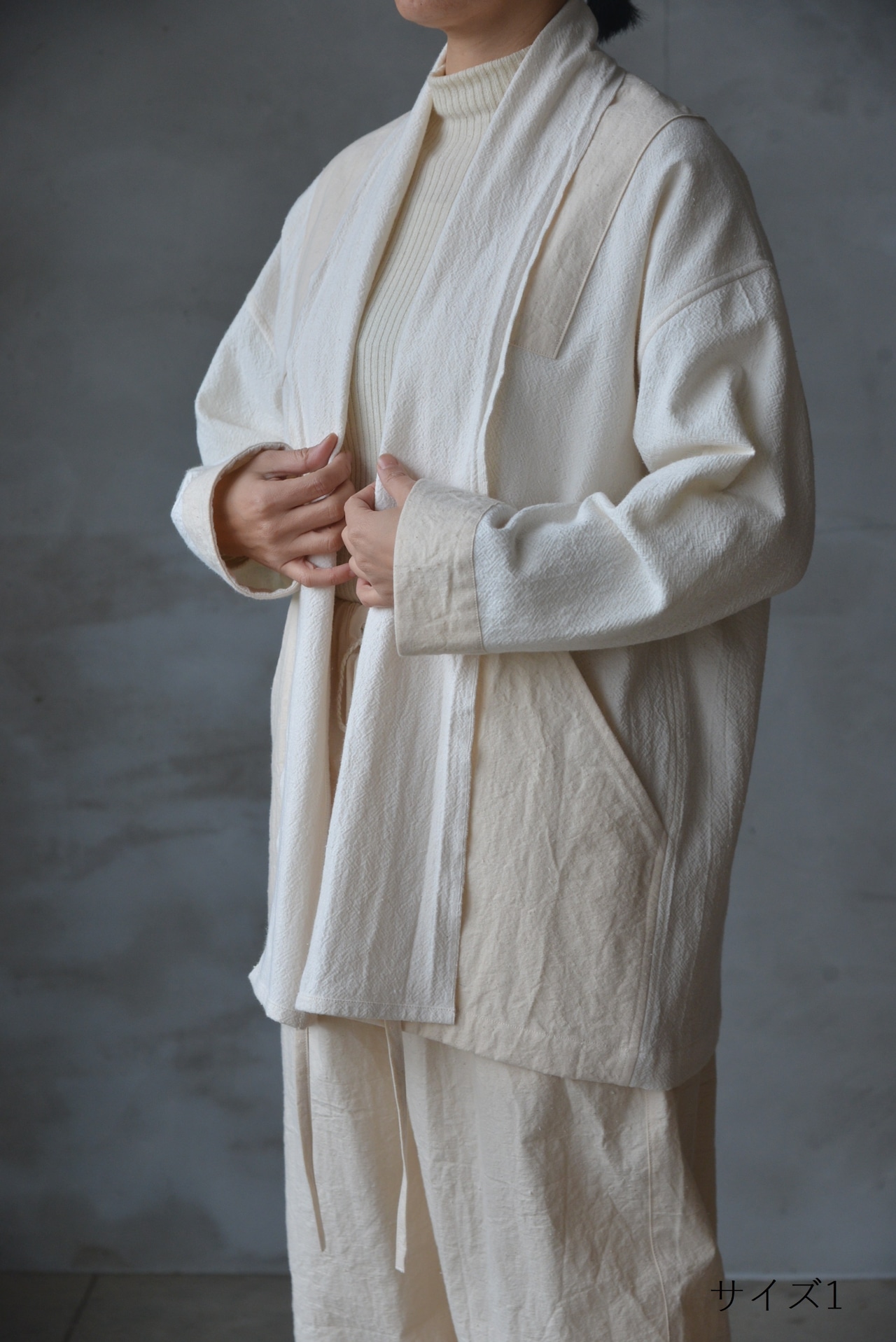 ワーク羽織 生成 備後絣 【ミドル】サイズ1.2