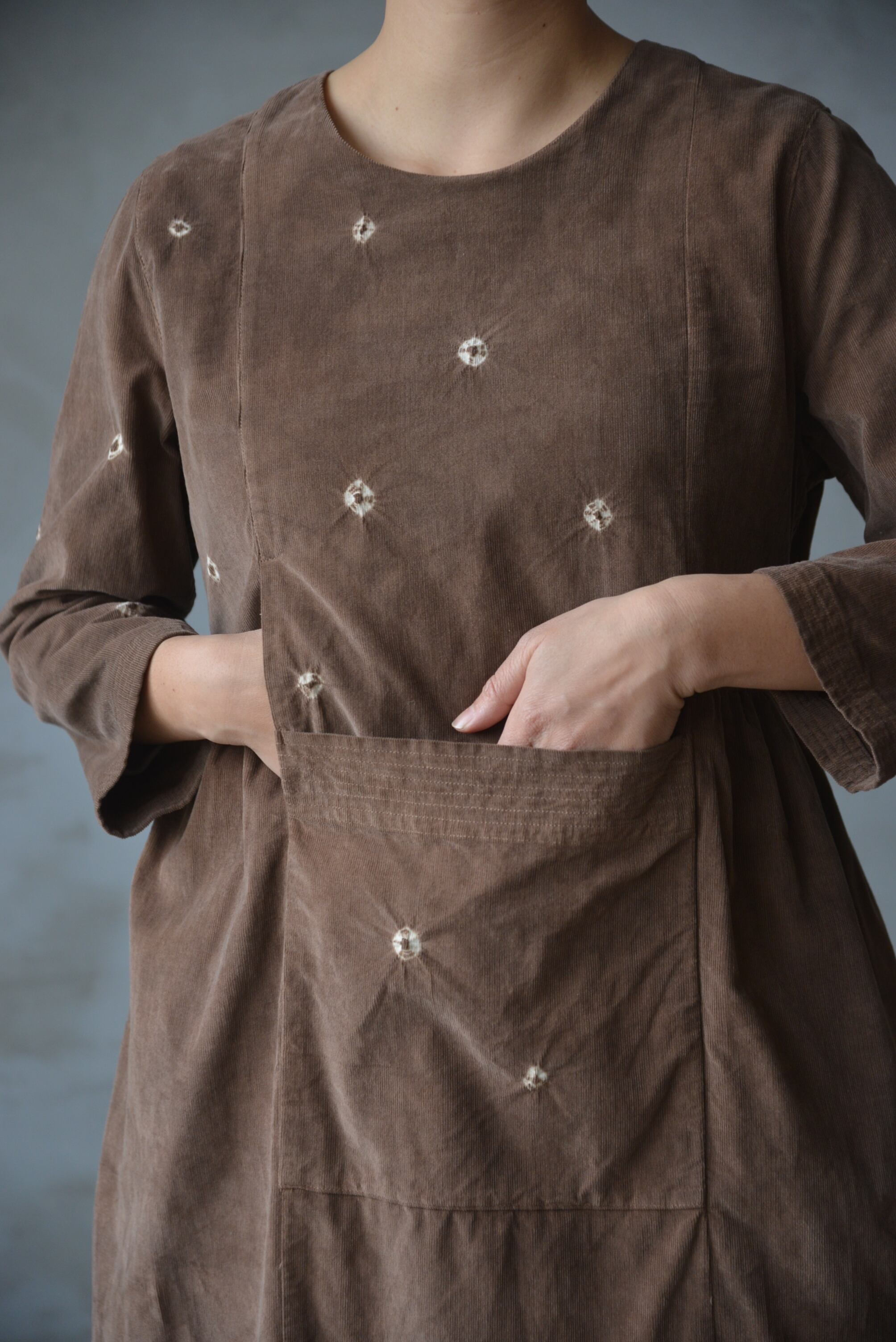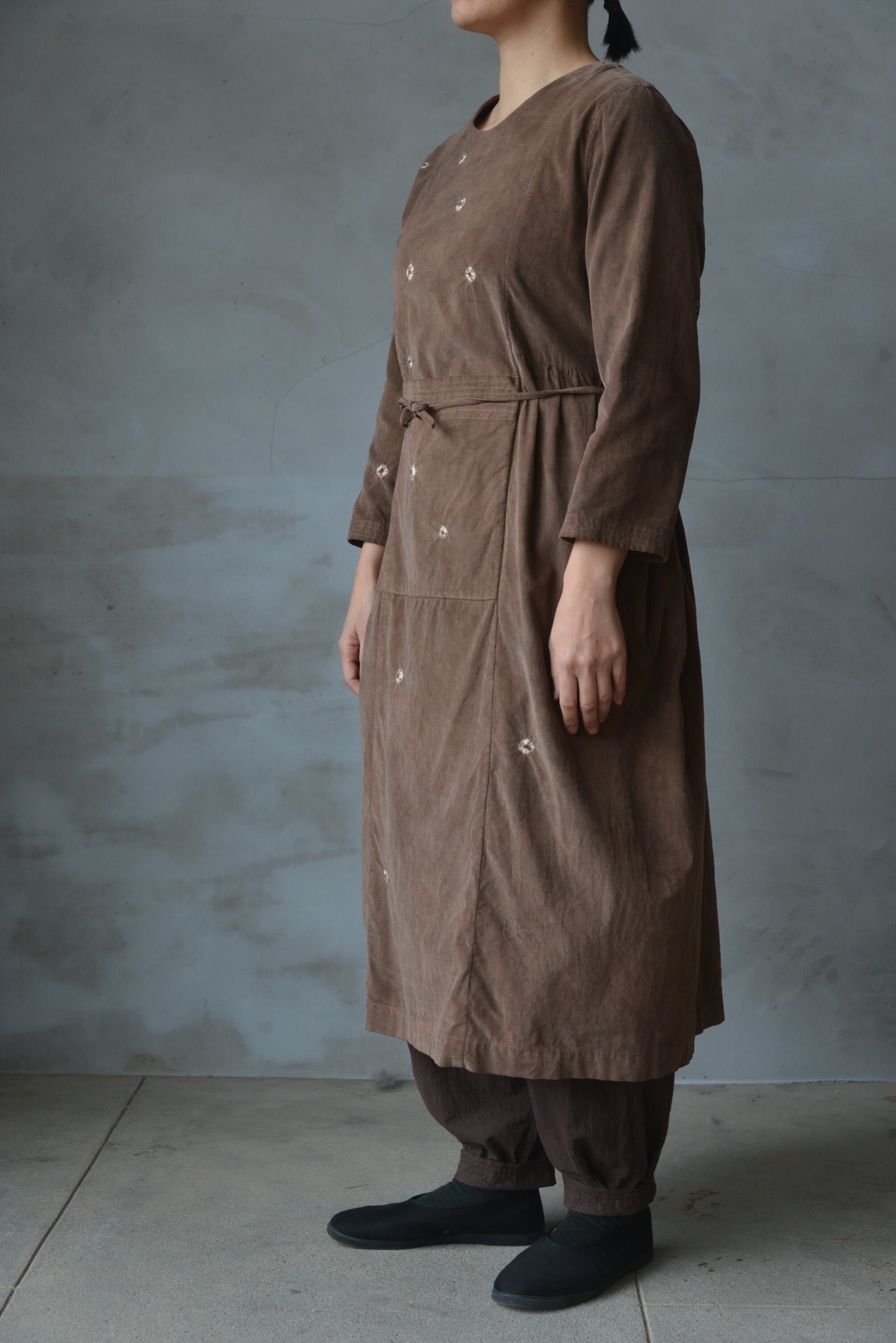腹掛けワンピース コーデュロイ 阿仙薬染め【ミドル】*Unique Piece