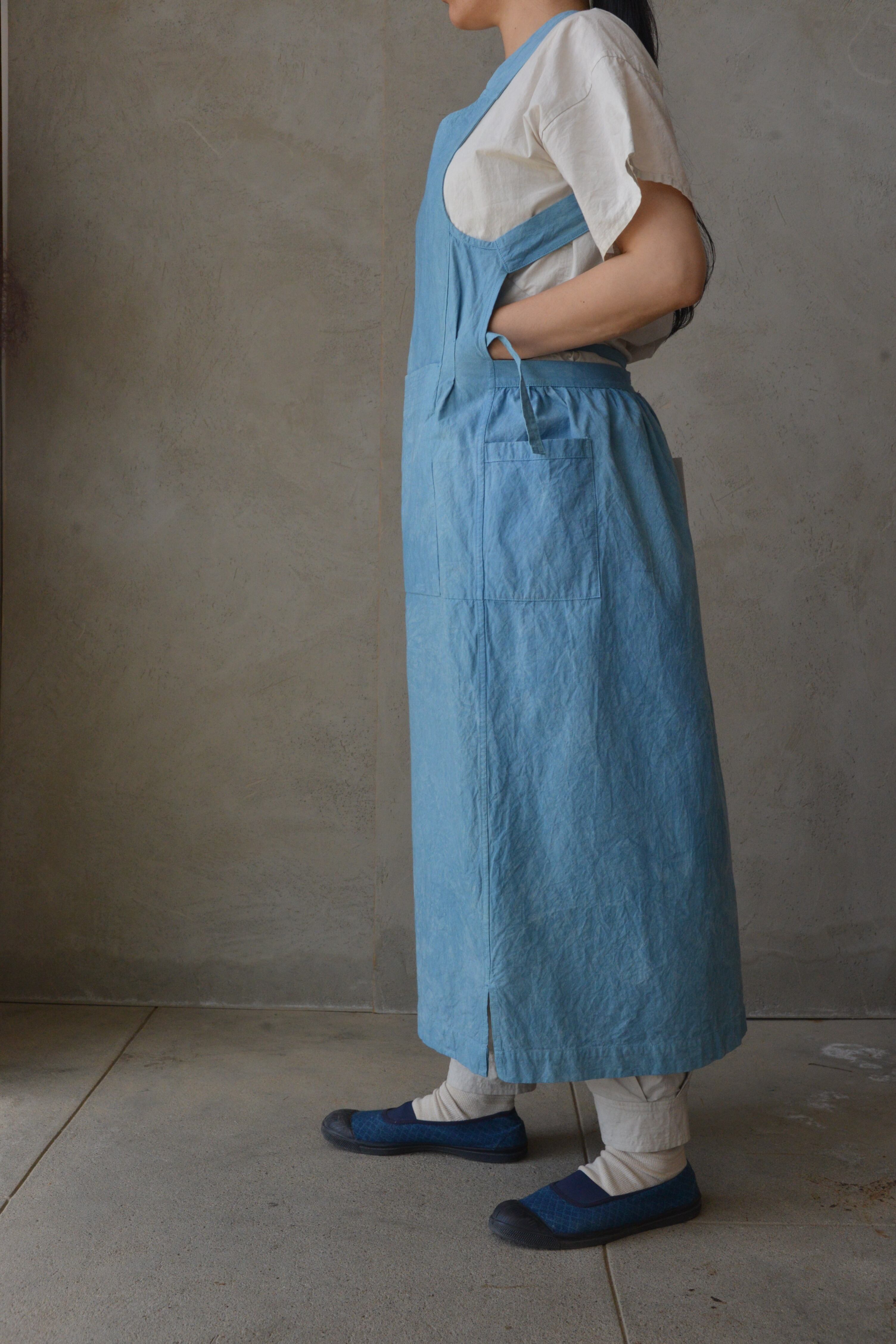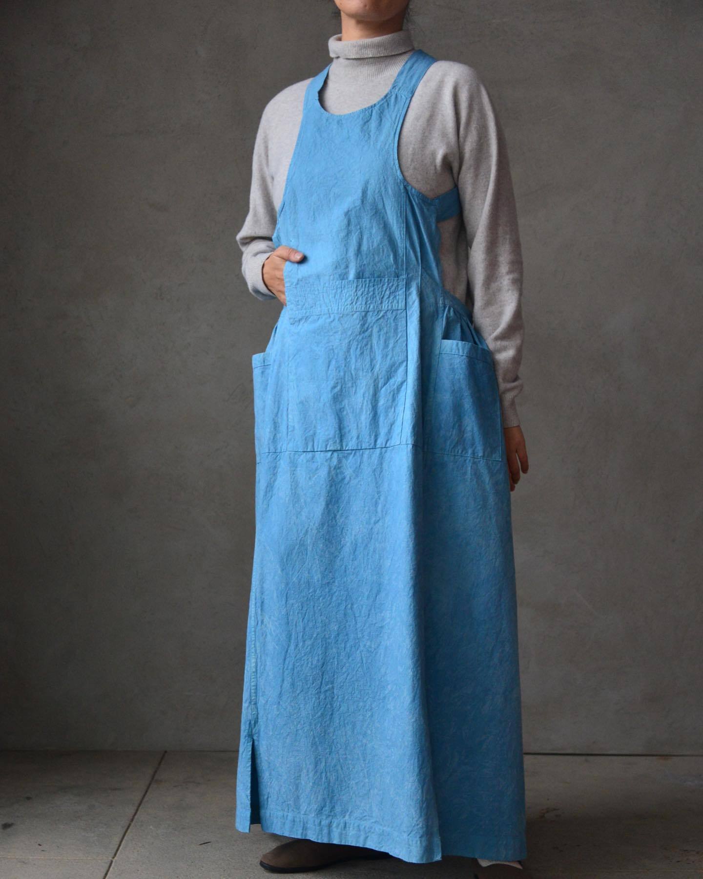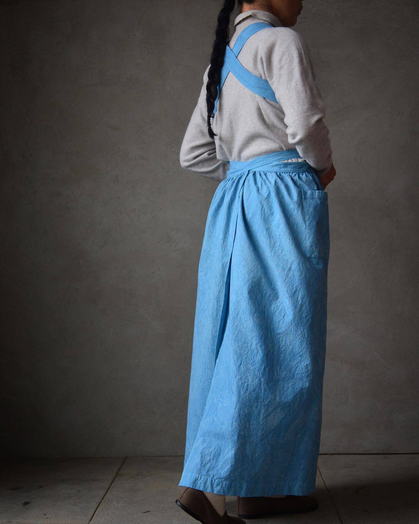 作業と日常の中間にあって、ワーク感とエレガントさも兼ねていて、作業中にそのまま出かけられる様な一枚になったらと思って作った1枚です。